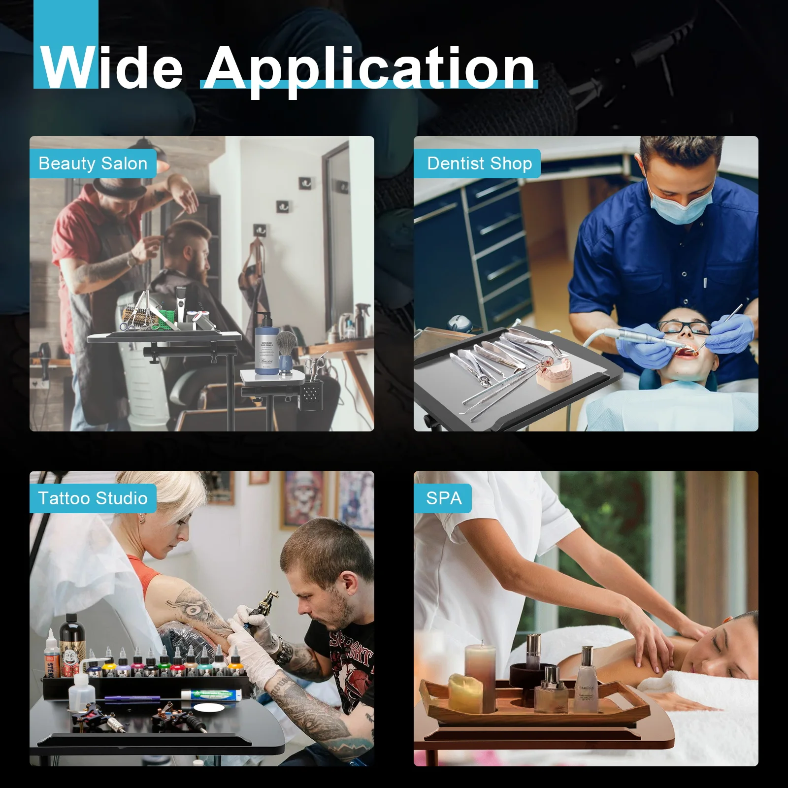 This tattoo workbench stand can be placed at home, a tattoo studio, a beauty salon, a medical shop, or a dentist shop use, suitable for beginners and tattoo artists for daily practice and work.