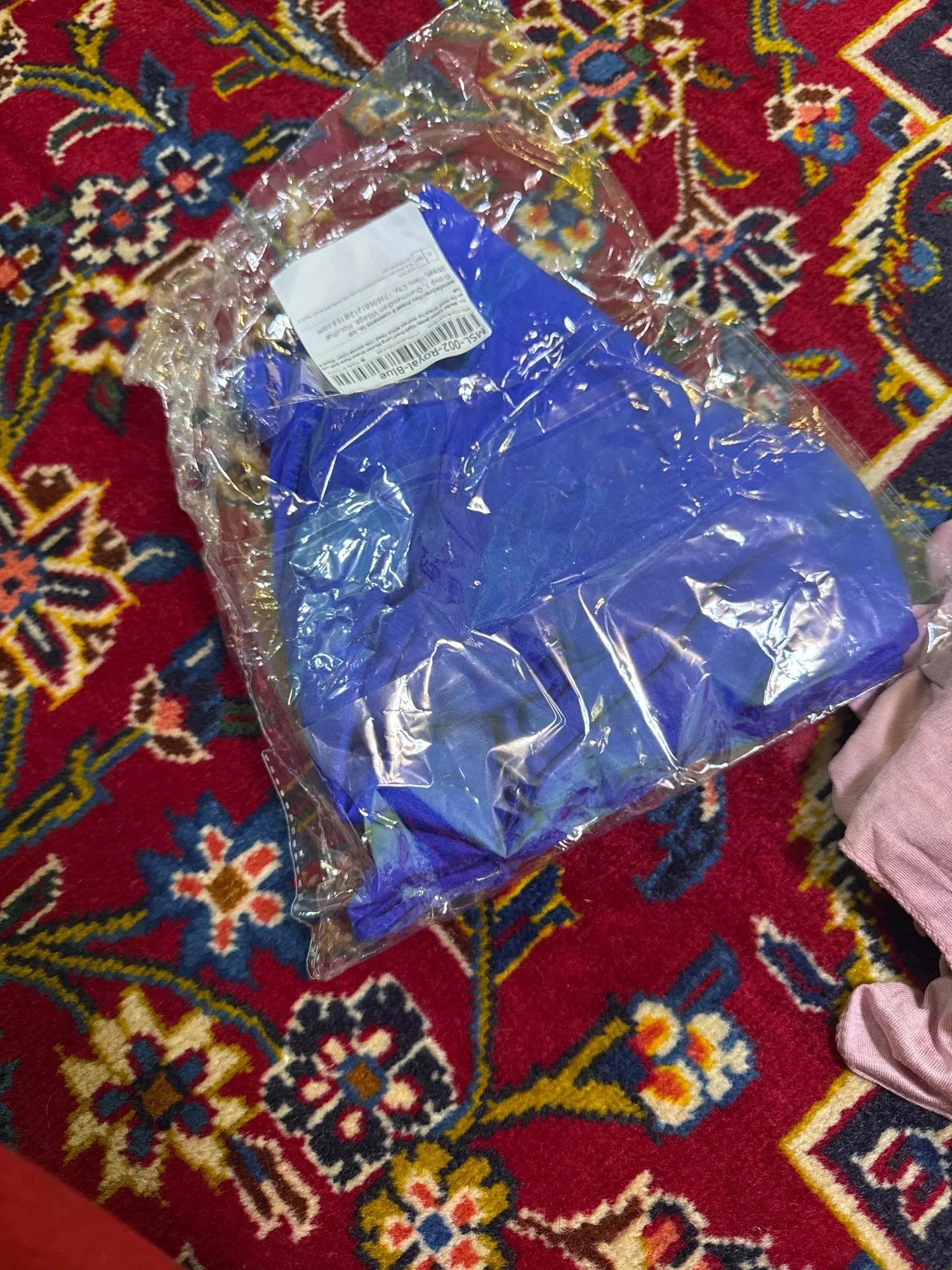 Just as described, the blue is a little lighter than shown but the material is a good stretch jersey. Shipping took a moment but considering circumstances.