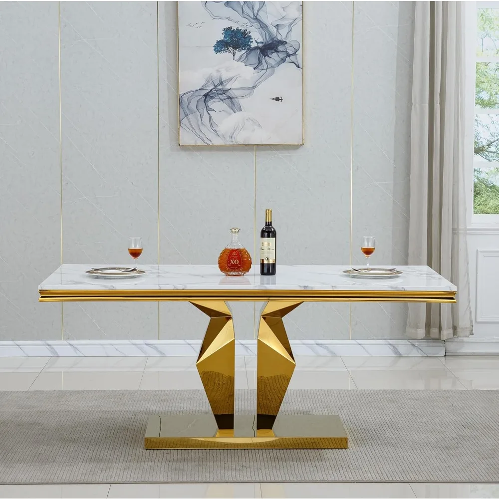 - 【Faux Marble Dining Table for 4-6】: Crafted with faux marble tabletop and class diamond-shaped design stainless steel base. Strong grip with the help of diamond-shape stainless steel base holding the top, making the table as a strong and reliable option for long time.With waterproof finish, making the surface is scratch resistant, and easy to clean