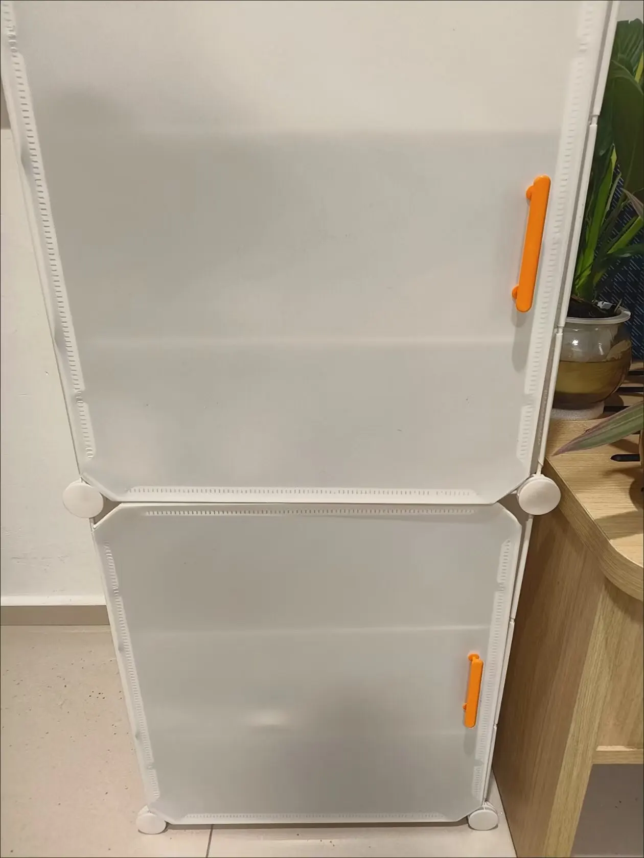 I’ve received the shoe cabinet. It was very easy to assemble, and it’s very sturdy and well-made, plus it keeps dust out. It doesn’t take up much space by the door, and it offers plenty of storage.