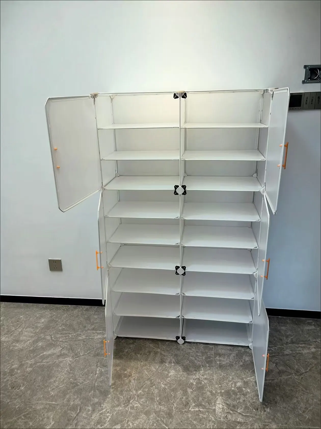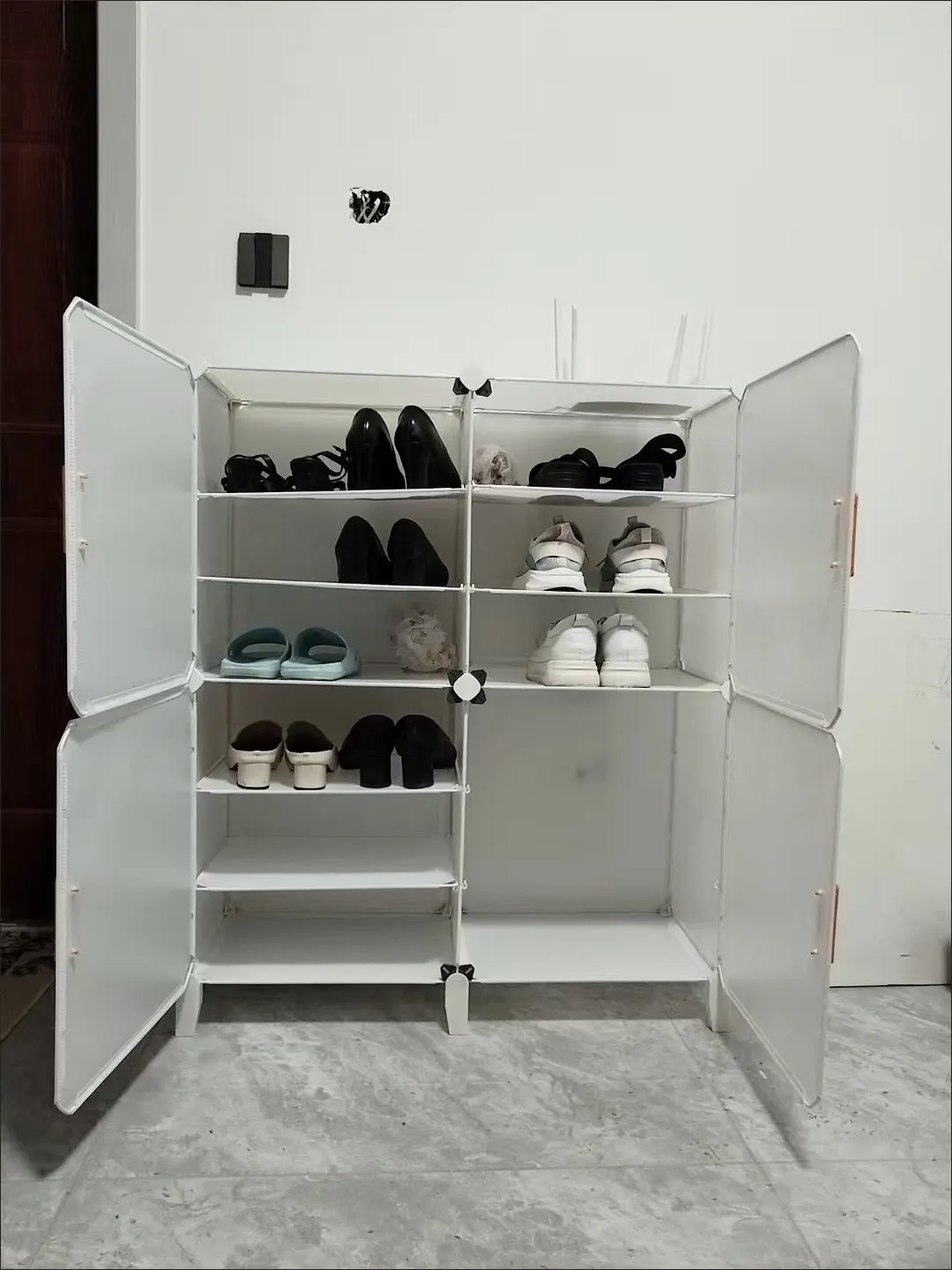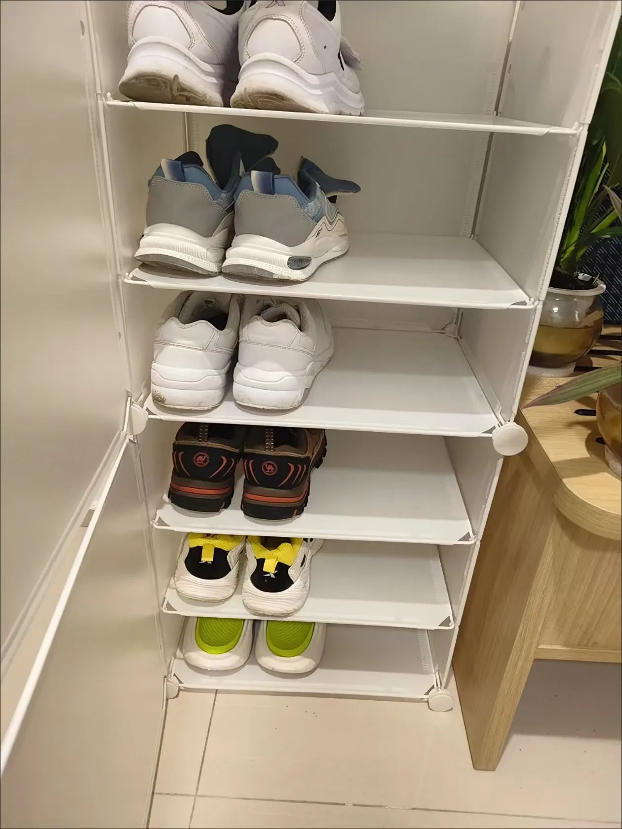 The shoe cabinet is really nice, very sturdy and sturdy. I really like this shoe rack and immediately used it. The material is very good, without any smell, and the room has become much brighter and tidier.