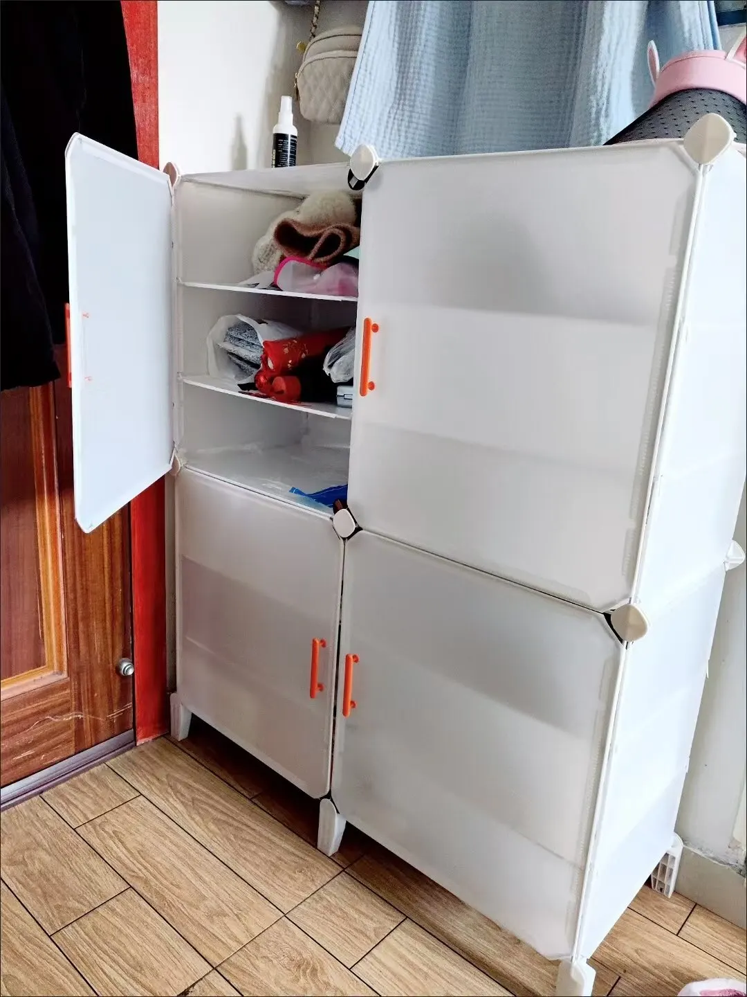 Assembly is also very simple, the door panel is easy to open and close, and the capacity is also large, which can accommodate my shoes. The quality is also very good.