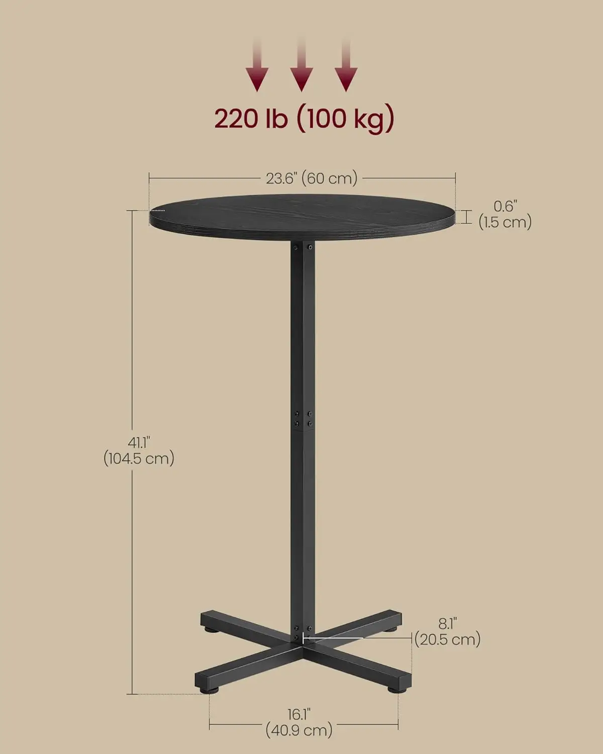 Elevate your home or bar space with this stylish and functional round cocktail table set. Designed for modern living, it offers durability and ease of use. Key Features: – **Durable Construction**: Features a sturdy metal frame with a cross base for enhanced stability, ensuring long-lasting performance in high-traffic areas. – **Easy Assembly**: Comes with clear instructions and all necessary tools, allowing quick setup without professional help—perfect for DIY enthusiasts. – **Spacious Design**: Each table measures 23.6 x 41.1 inches, providing ample surface area for drinks, snacks, or decor while comfortably accommodating 2-3 people. – **Versatile Use**: Ideal as a bar table in pubs, a cocktail table in living rooms, or an accent piece in offices—adapts to various settings effortlessly. – **Sleek Aesthetic**: Finished in ebony black with a modern round shape that complements contemporary decor styles like industrial or minimalist themes. Benefits: This set enhances social gatherings by offering convenient seating options and adds a touch of elegance to any room. Its compact size makes it suitable for small spaces without sacrificing functionality. The easy-to-clean surface ensures low maintenance, saving you time on upkeep. Why Choose This Product? Crafted from high-quality materials, this table set balances style and practicality. It’s perfect for those seeking affordable yet premium-looking furniture that withstands daily use. Whether hosting parties or enjoying quiet evenings at home, it provides reliable support and aesthetic appeal.