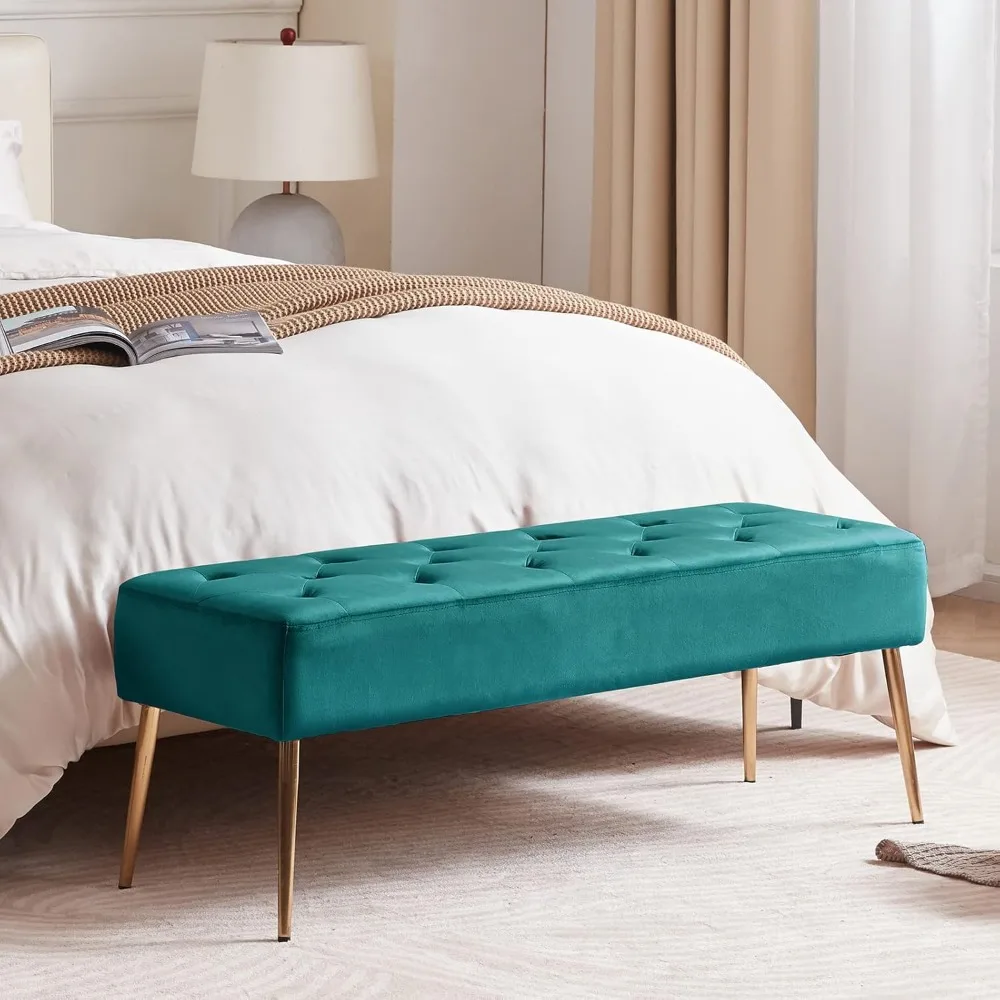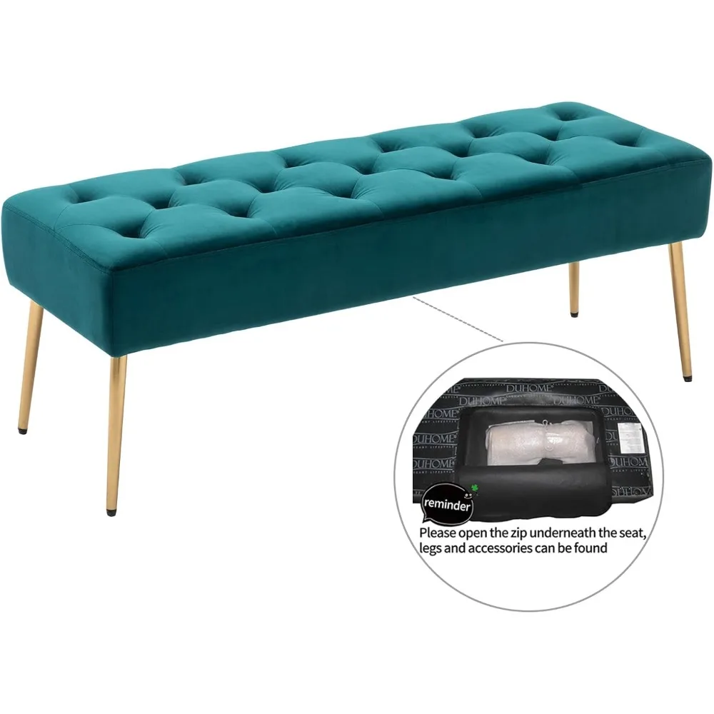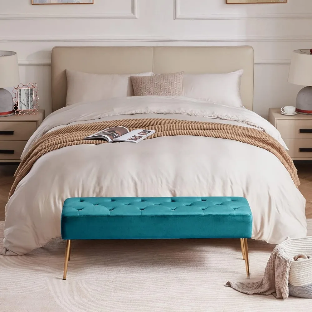 - Comfortable Sitting: Generously padded with high-density sponge, the bedroom bench is comfortable and practical as well. Leather cushioning provides a soft but supportive seat. Put your feet up on a velvet cushion and descend into pure relaxation and comfort