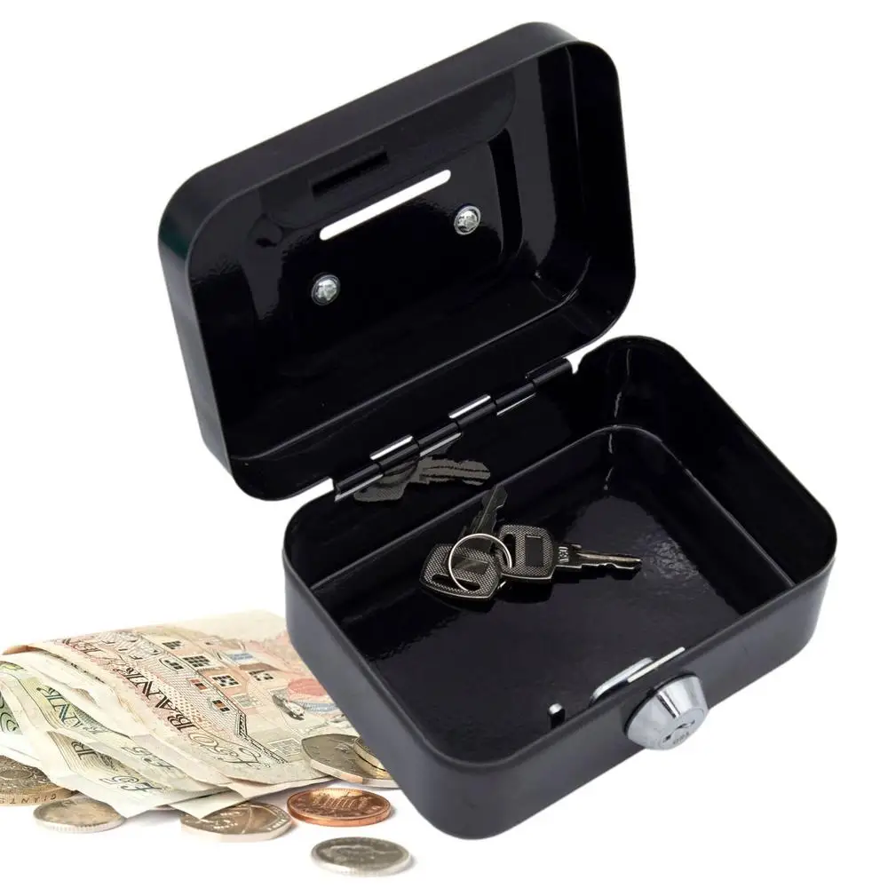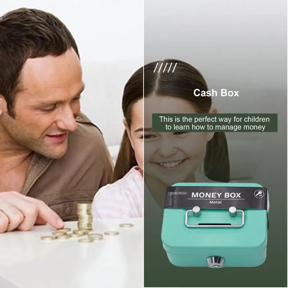 Money Safe Box Mini Cash Box Metal Key Money Bank Small Security Lock Box Portable Sturdy Lockable Coin Boxes