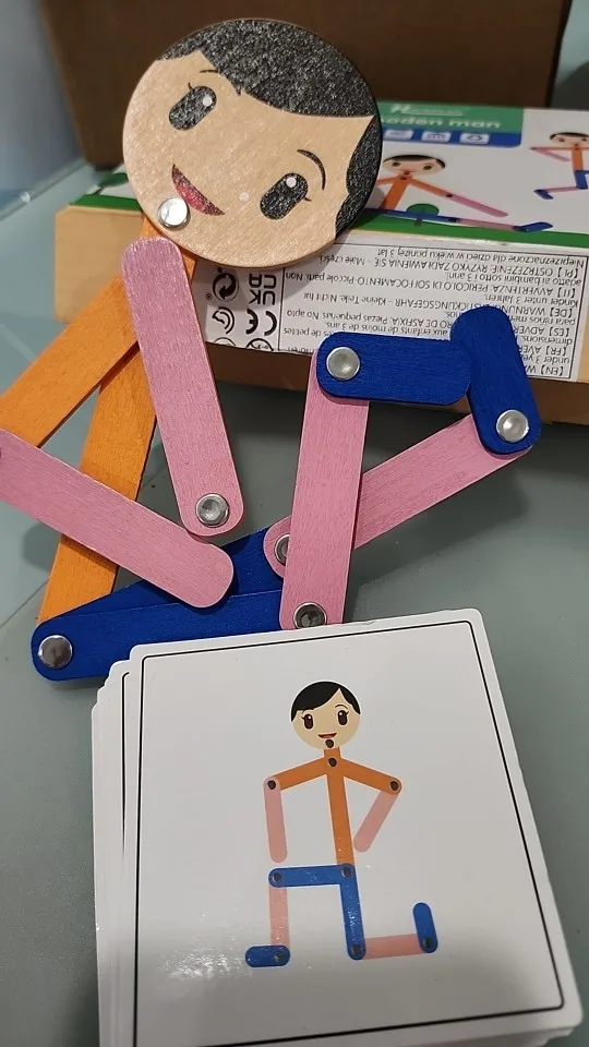 Simple educational set. The doll is quite big. The joints were initially stuck but once you relaxed them it works well. Came with pack of position cards and a box.
