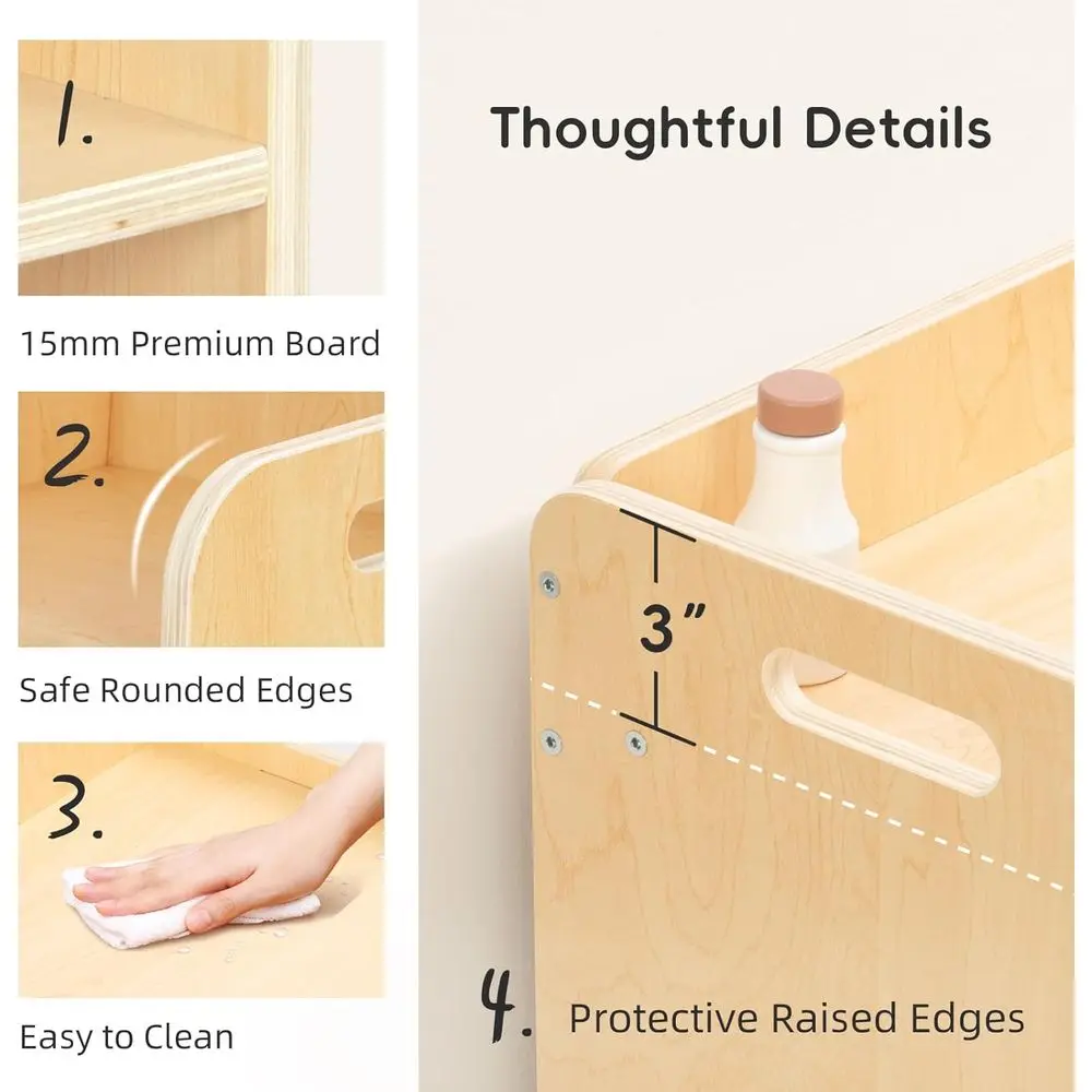 Learning and Engagement: Guided by Montessori principles, this toddler-sized furniture set fosters independence, enhances fine motor skills, and promotes hands-on learning during play, study, and meal times.