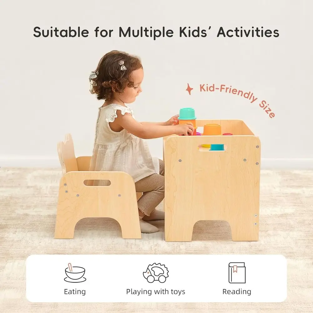 Montessori Toddler Table and Chair Set, Wooden Activity Furniture for Kids, Ideal for Eating, Reading, Drawing, Play, and as a S