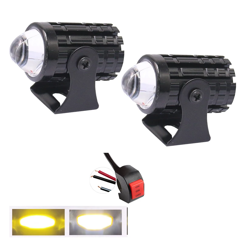 Additional Fog Lights Motorcycle Auxiliary LED Headlights Long Range Lamp 12-80V Dual Color High/Low/Flash Beam Moto Spotlights