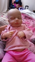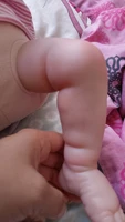 realistic doll. With details in the hair that is painted but looks realistic, nails with glitter that seem real, its body is made of the same material, the eyelashes are not so long so it gives the impression that it is a real baby. The eyelashes are painted. On her body there are details of painted veins, which makes her look very real. Its intimate part is feminine.