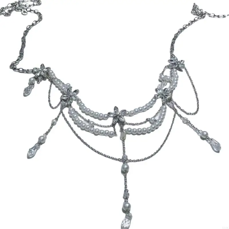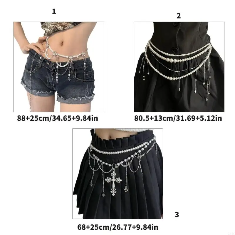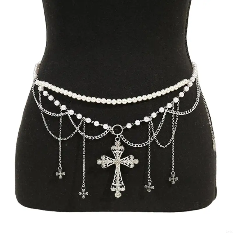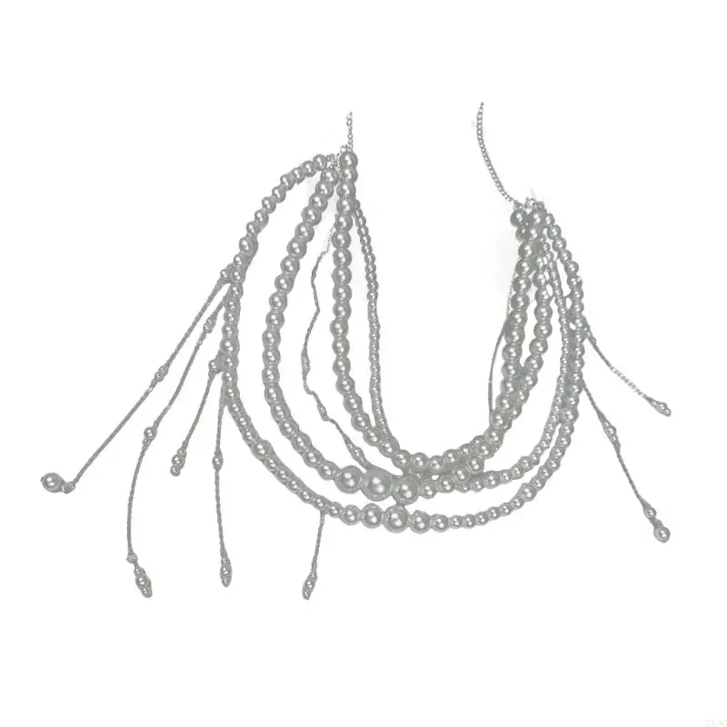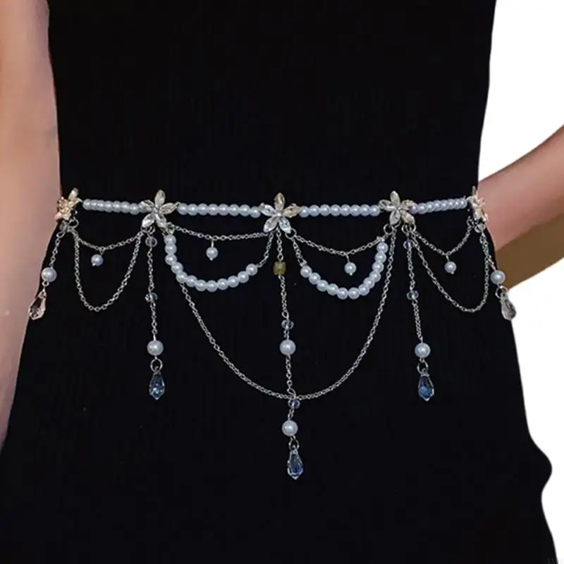 Multi Layered Pearls Tassels Waist Chain Belt for Women Elegant Body Chain with Adjustable Length for Parties and Festivals XX9C