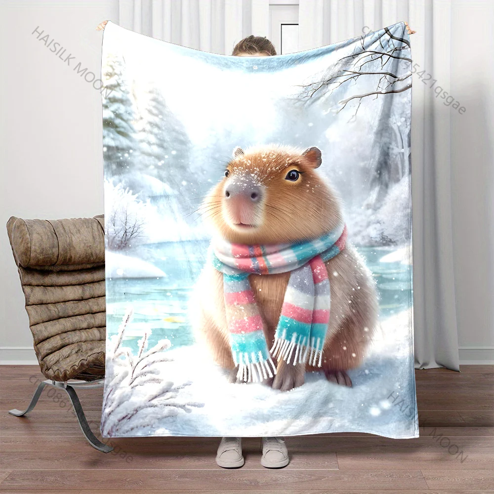 Multi-size Cute Capybaras Art Pattern Blanket Warm Soft Fluffy Kids and Adult Sofa Bed Throw Blanket Outdoor Travel Camping