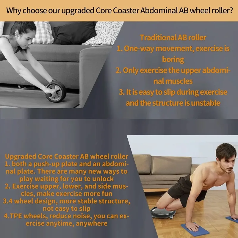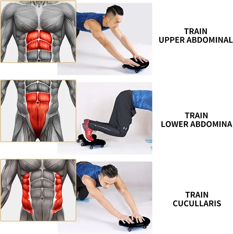 Silent: The wheels of abdominal plate are covered with PU leather, silent rolling, no scratches to the floor, compact size, don’t occupy much space, easy to store.