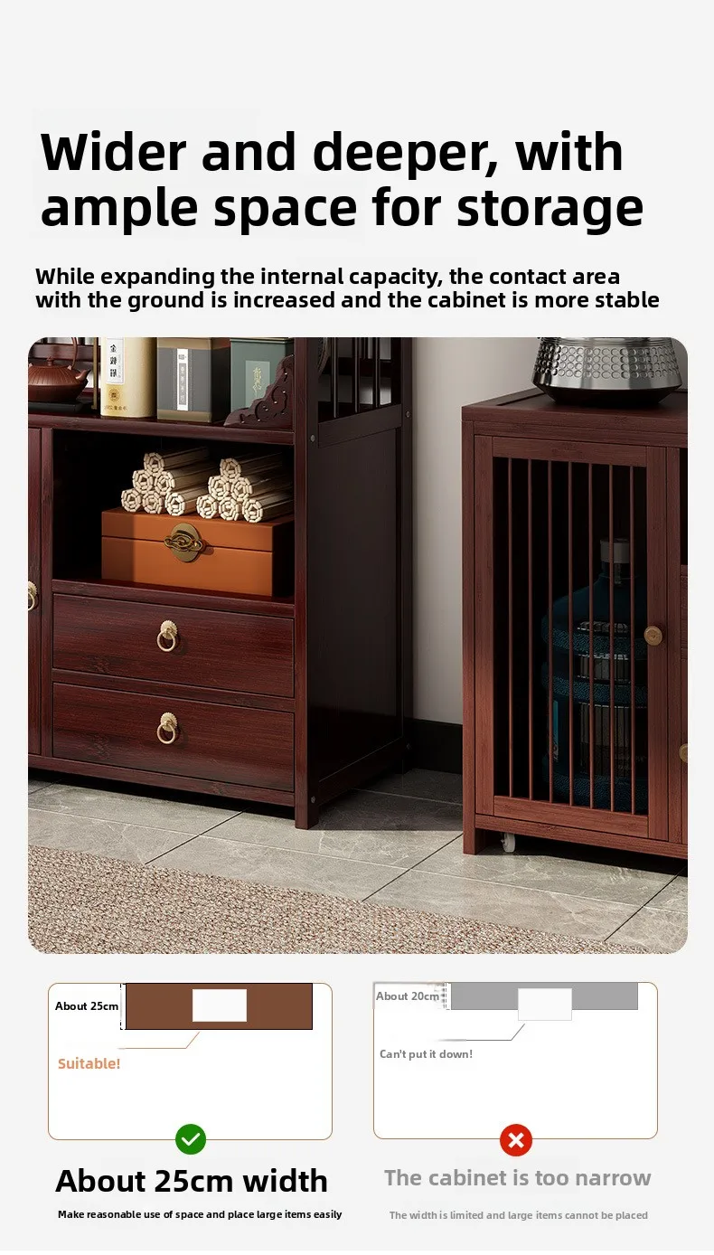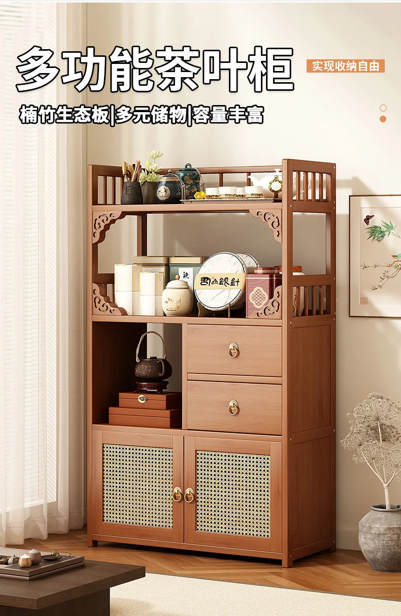 Upgrade your space with the Versatile Bamboo Tea Cabinet—where tradition meets smart living.