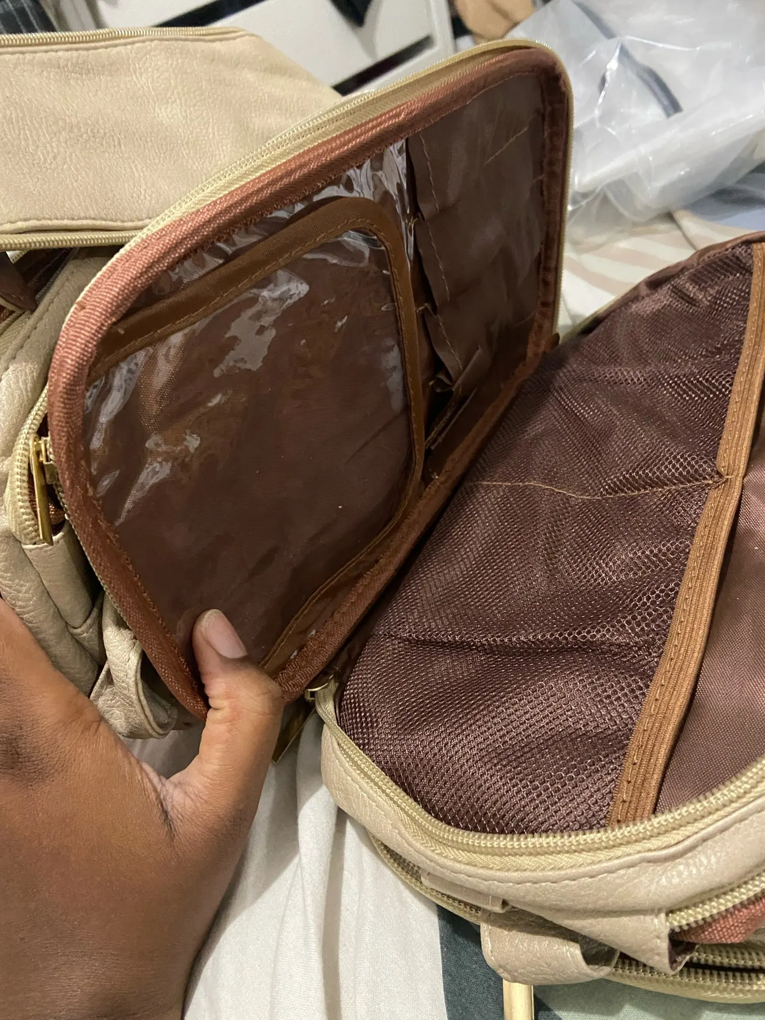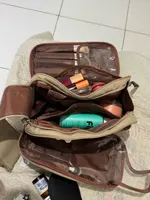 A wonderful cosmetic bag, finally all my cosmetics in one place) and also convenient separate compartments for brushes. At the beginning, there is a smell that dissipates during the day.