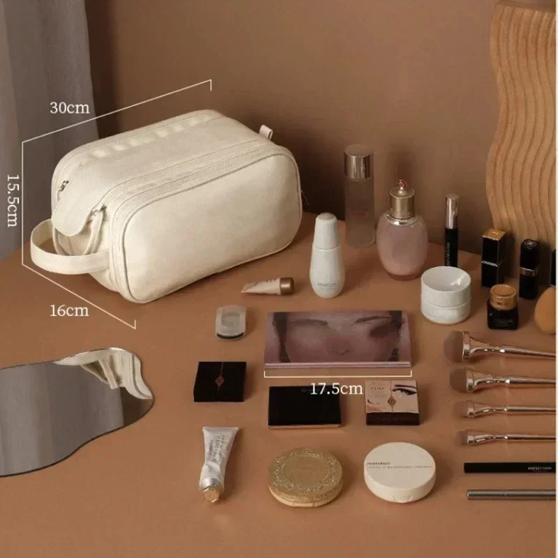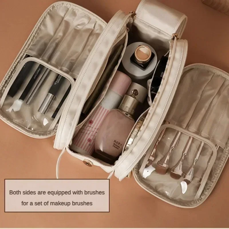 Multifunctional Makeup Bag For Women PU Leather Large Capacity Portable Double Zipper Travel Makeup Brush Toiletries Storage Bag