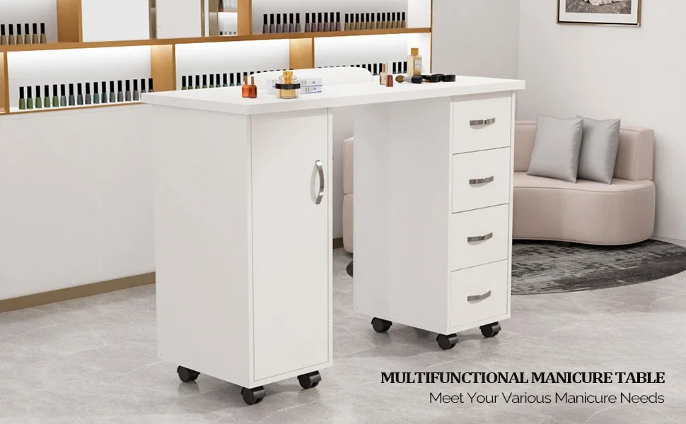 - 8 WHEELS FOR MOBILITY: The nail table has 8 wheels. It will be easier for you to move it around. And 4 of the wheels are lockable. If you want it to stay in one place, just lock the wheels.