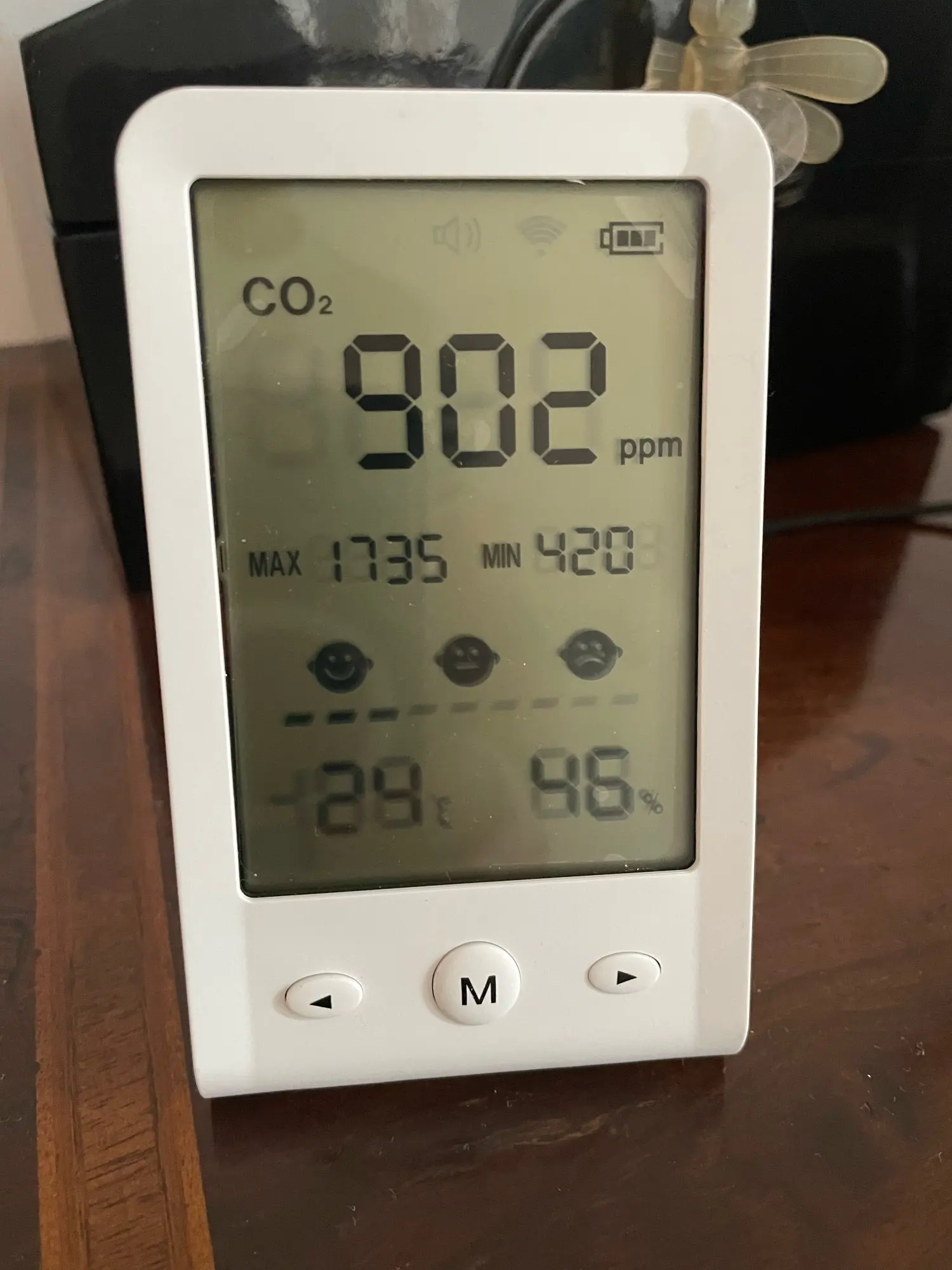 The device functions correctly and is quick to detect changes in temperature, humidity, and CO₂ concentration. I can’t, of course, verify the absolute accuracy of the measurements, but the variations are shown in a clear and consistent manner.
