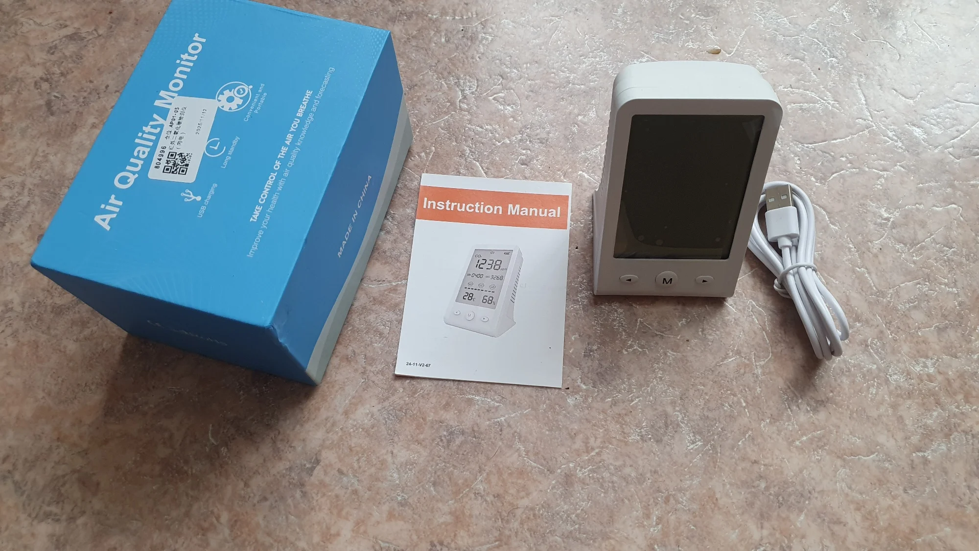 2. Portable Air Quality Monition. This smart air quality monitor measures 3 key air quality indexes: carbon dioxide, temperature and humidity. Real-time data monitoring shows the quality of environment, convenient to use. After receiving the goods, please fully charge the device first.