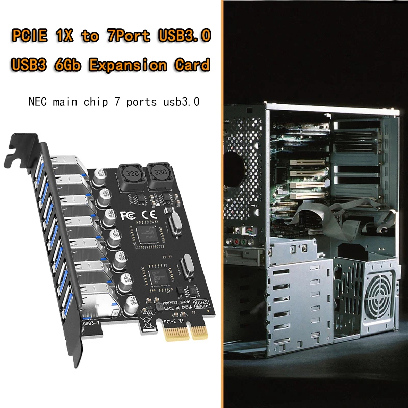 NEW 7 Port USB 3.0 PCI Express X1 Expansion Card PCI-E PCI E USB 3.0 Board USB3 6Gbps Adapter Controller NEC Chip for Desktop PC