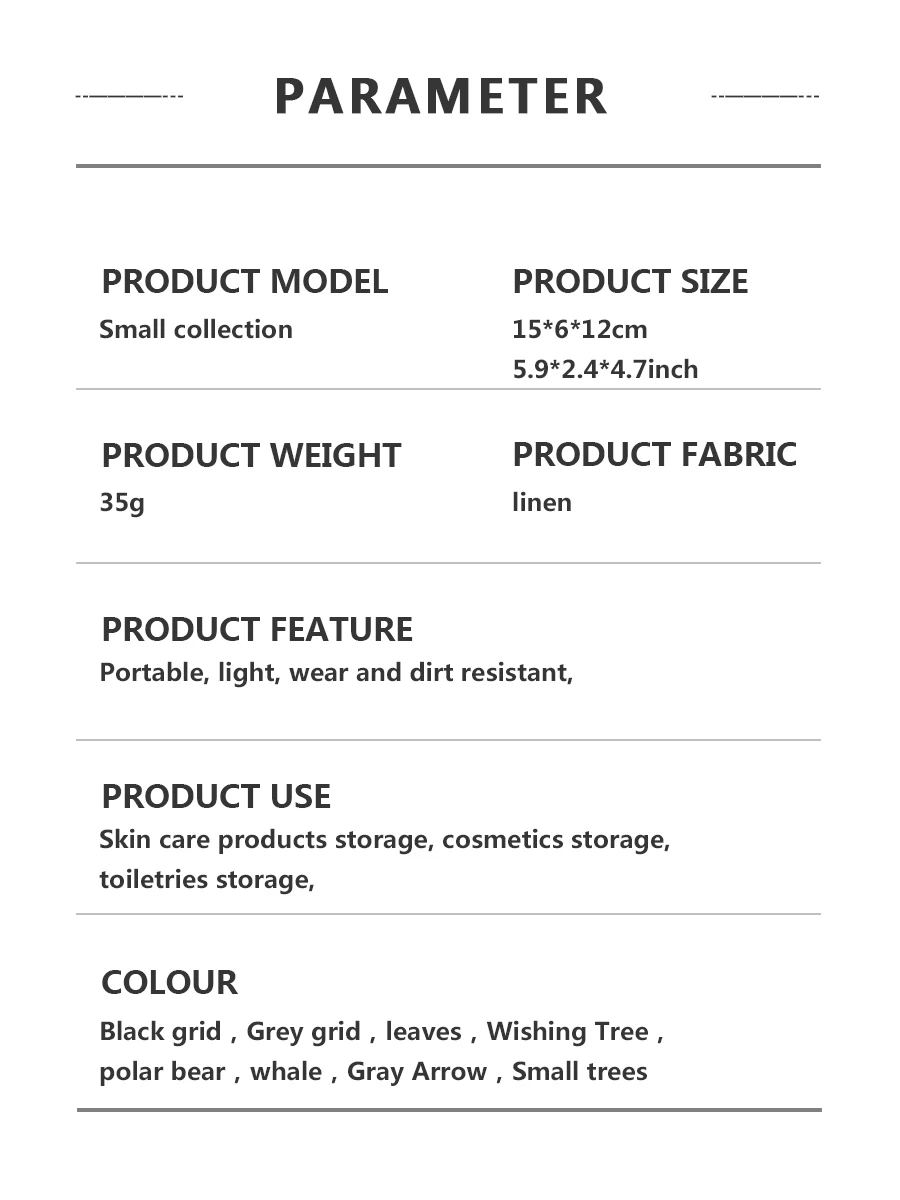 Product name: Linen cosmetic bag