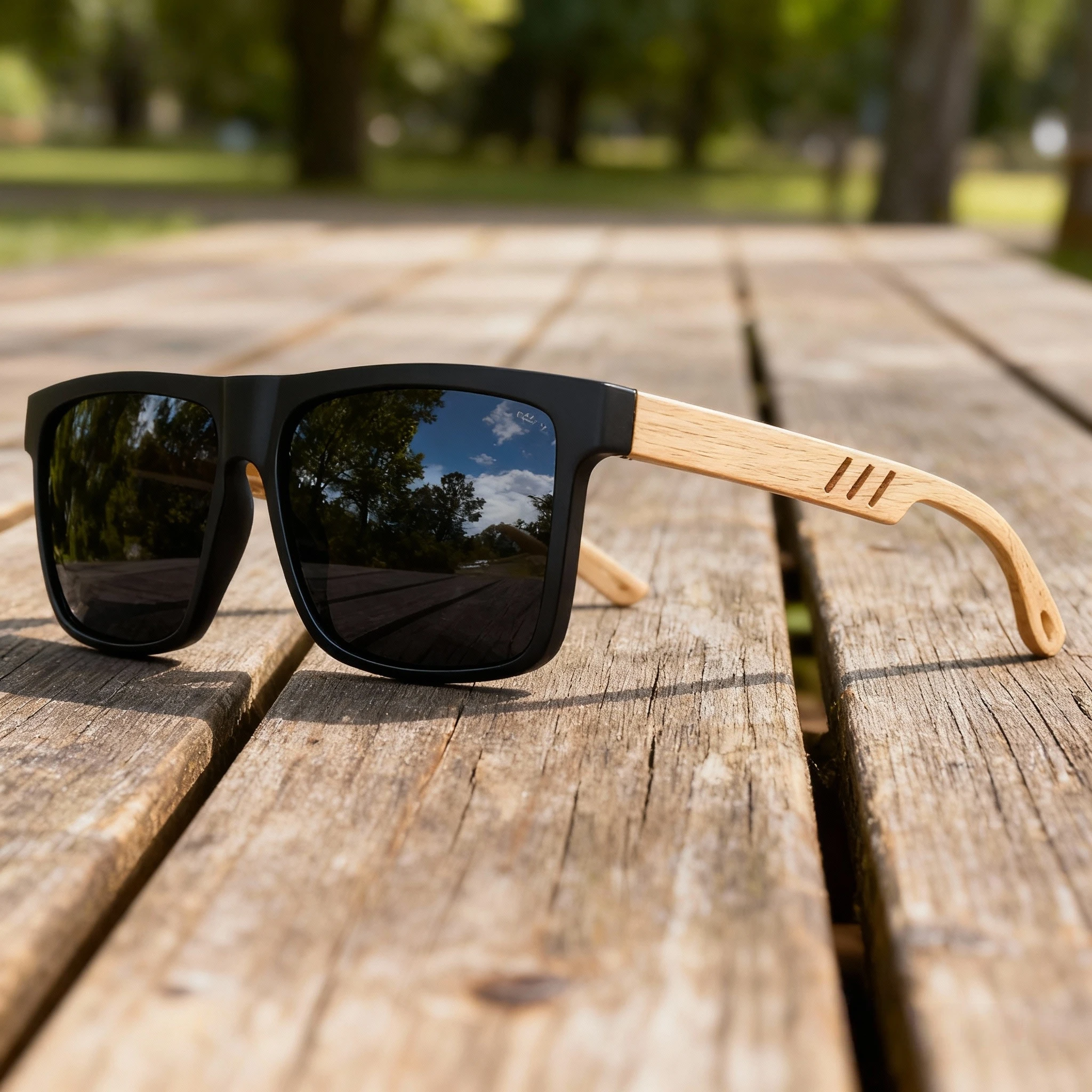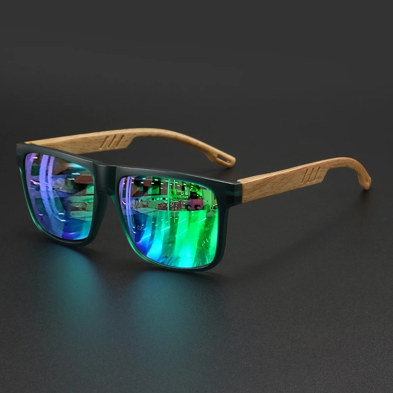 New Fashion Square Sunglasses – Wood Grain Spring Hinge, UV400 Unisex for Driving, Hiking & Travel