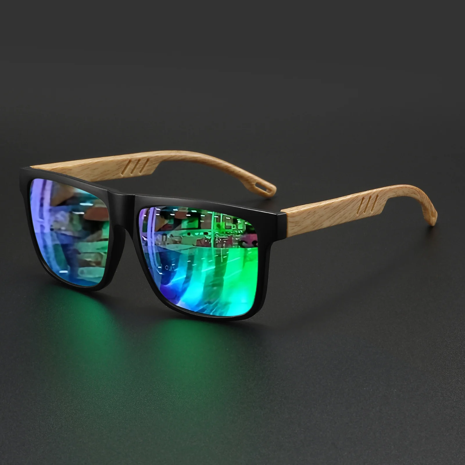 With their square frame style, these sunglasses add a touch of fashion to any outfit, while the wood grain spring hinge provides a comfortable fit.