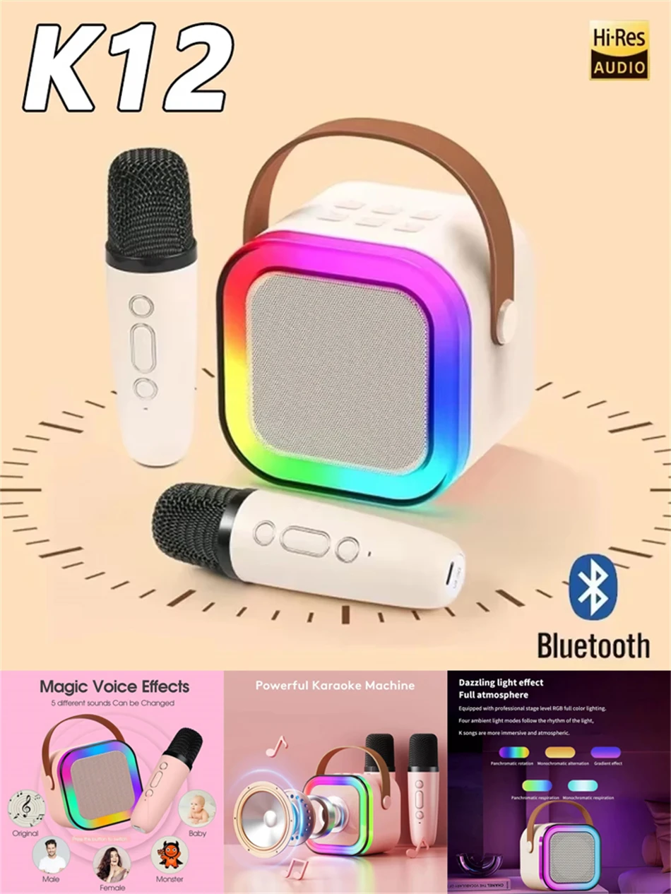 New Hot K12 Bluetooth Speaker Portable Home Cute Karaoke Mini Wireless Audio with Microphone K Song Family Singing Machine