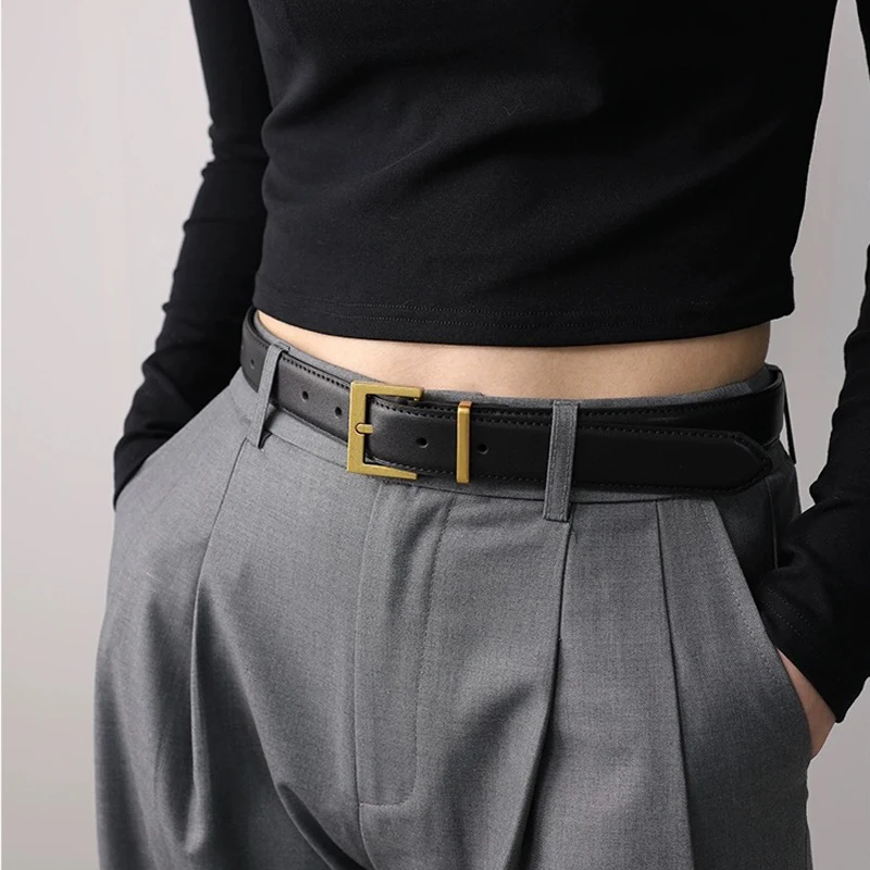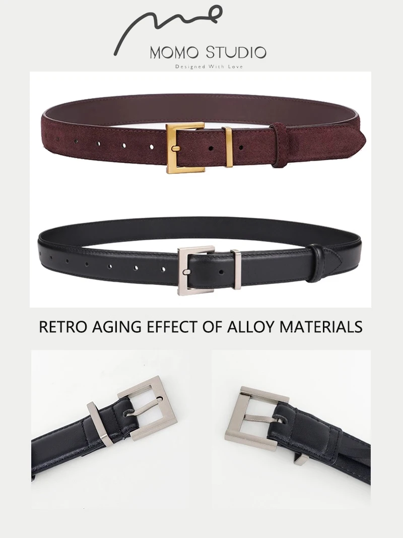 Title: New Luxury Double Genuine Leather Belt for Women Jeans Casual Dress Square Alloy Buckle Ladies Trendy Belts Fashion Waistband