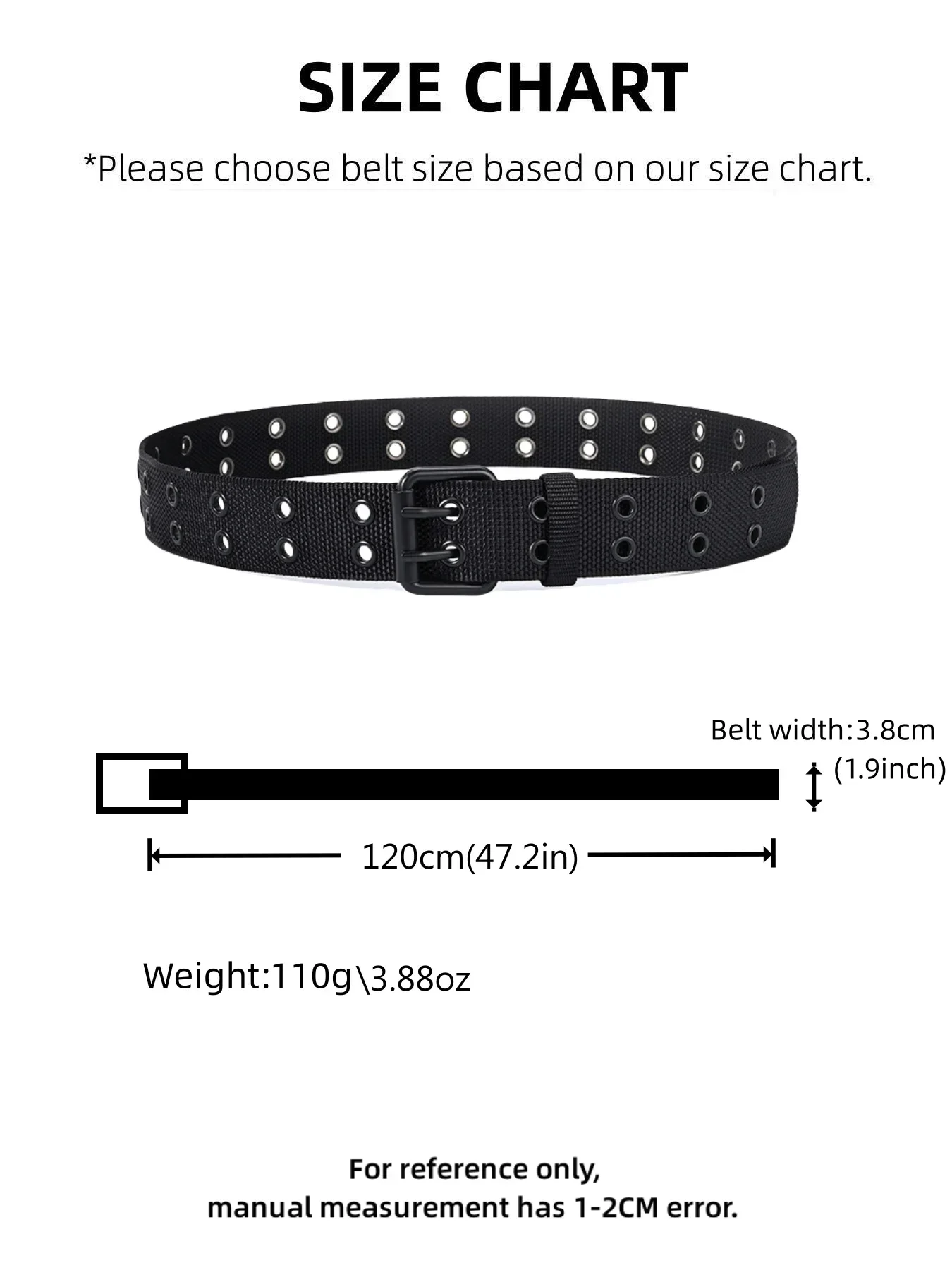 Color: Double Black Hole Belt Length: 120cm for Waist36-39 Ships From: