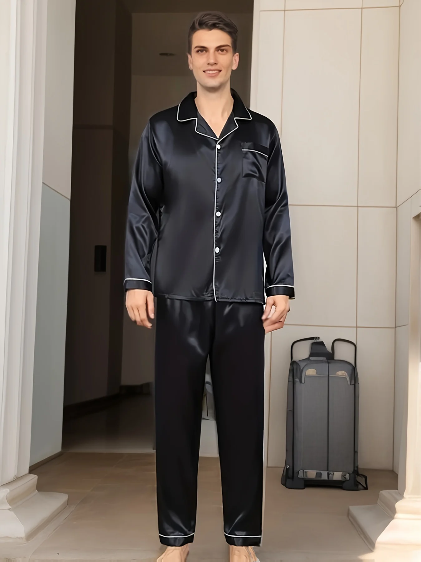 It is very beautiful but the size is not good, I asked for it XXXL & I arrived for a M I was excited because I asked for an equal one for my husband and for me but he did not fit but very beautiful pajamas