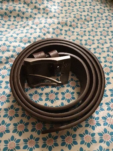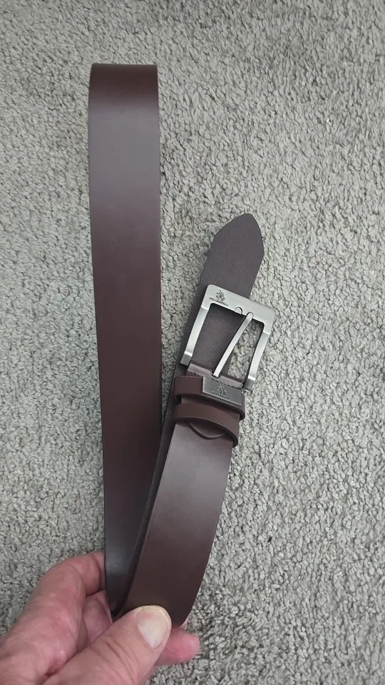 Beautiful genuine leather belt, with a brushed steel buckle that looks great, with screws to cut and shorten it if necessary (avoid making additional holes if needed).
