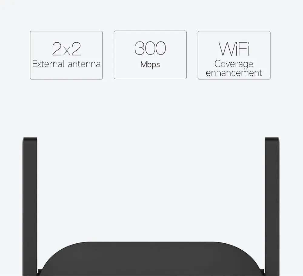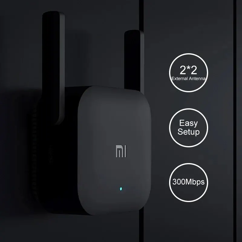 2 × 2 external antenna, with a transmission rate of up to 300Mbps:Add Wi-Fi extenders to vastly speed up your gaming and movie-watching experience.The Mi Wi-Fi Range Extender Pro now comes with a 2×2 external antenna to maintain a transmission rate of 300Mbps while also increasing signal stability.