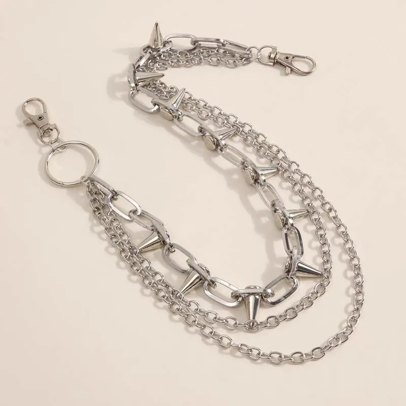 New Punk Rivets Pants Chain for Women Men Hip Hop Silver Color Multilayer Waist Chain Dress Jewelry Gothic Rock Accessories