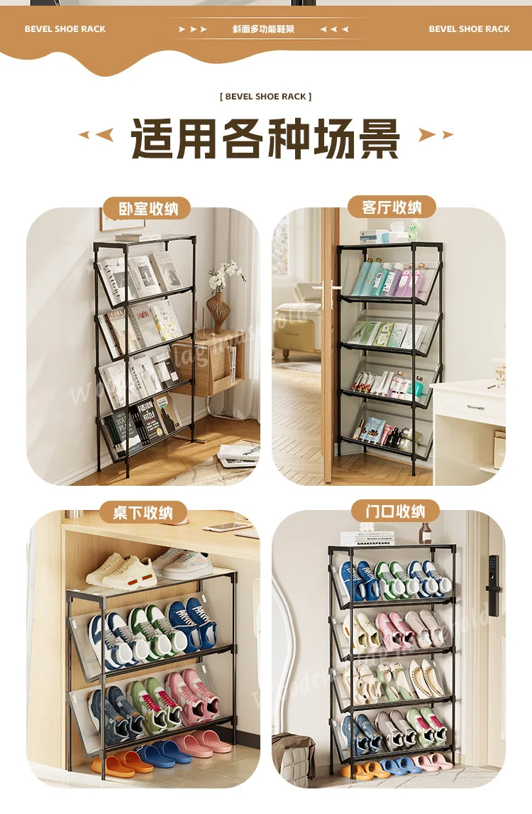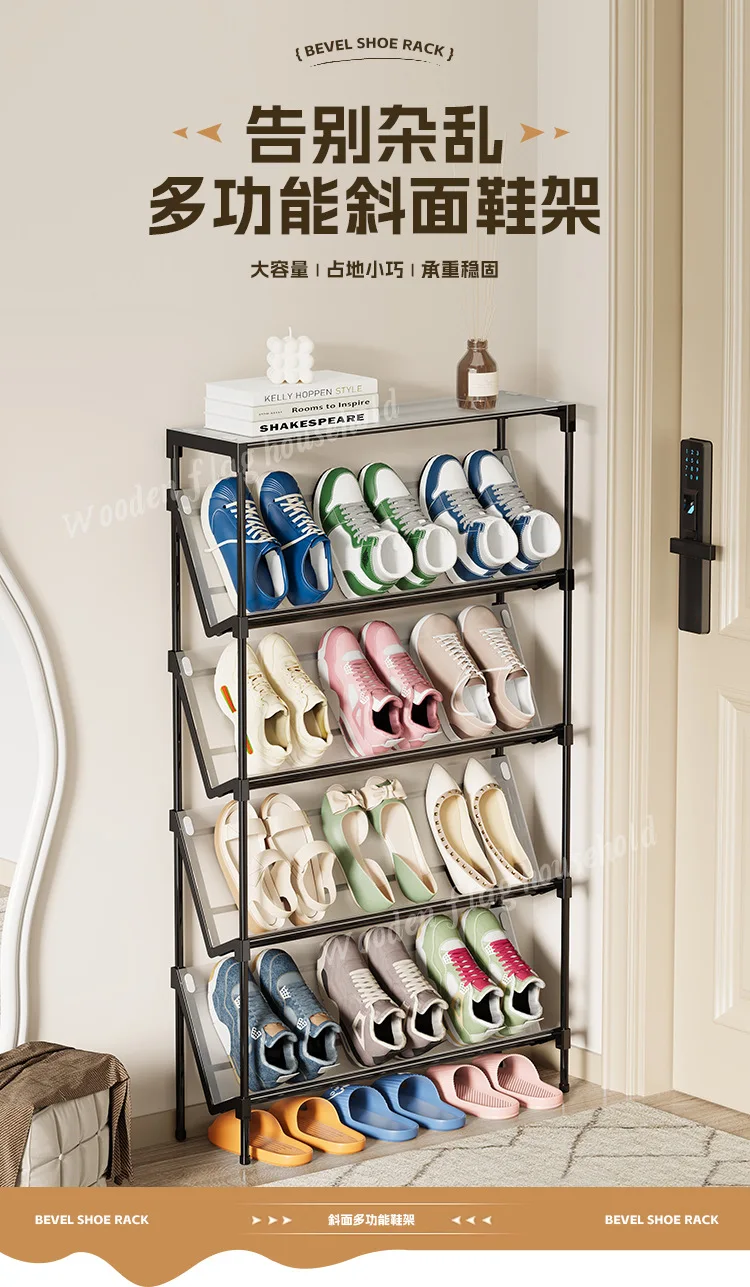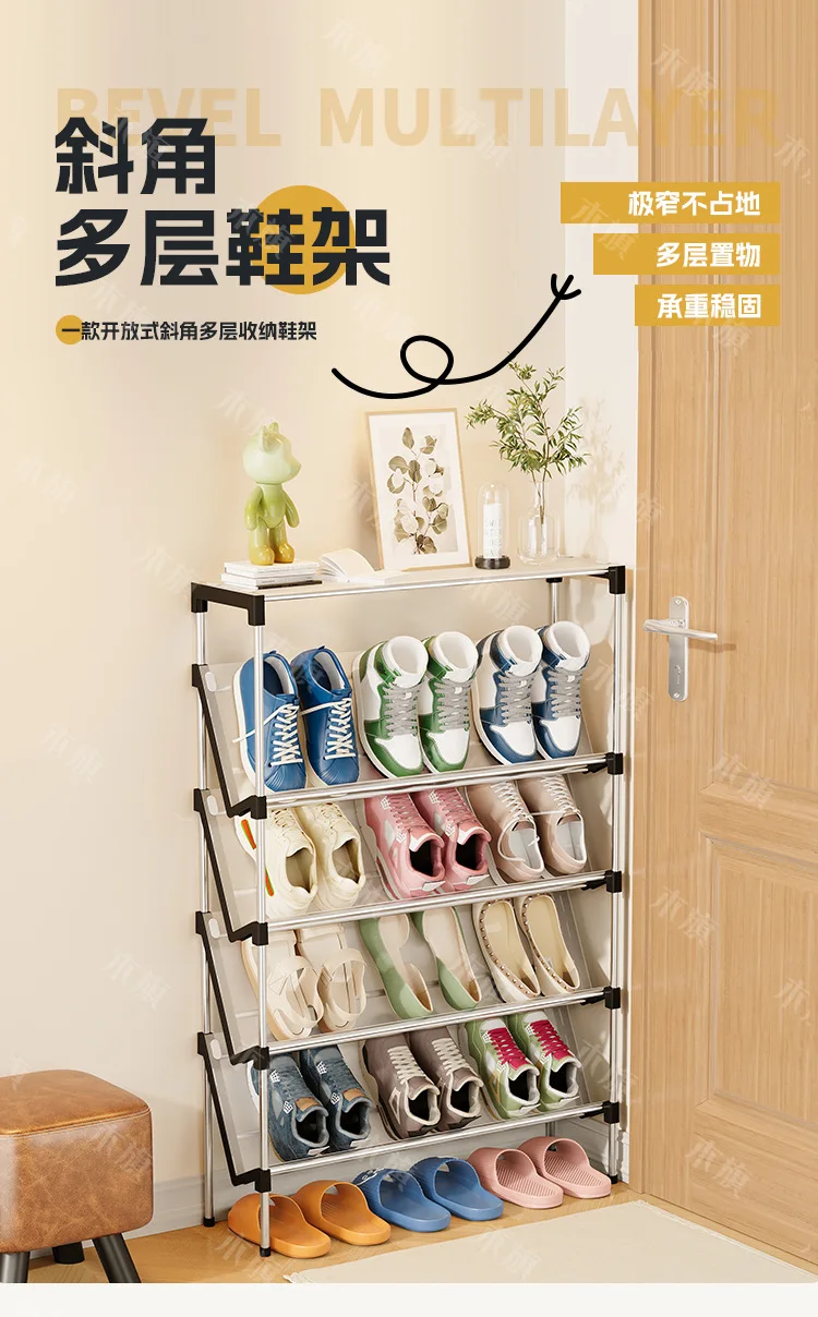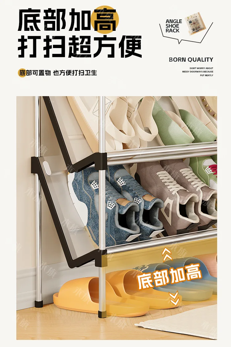New simple multi-layer inclined dustproof shoe rack. Space saving home door step shoe cabinet, easy to assemble