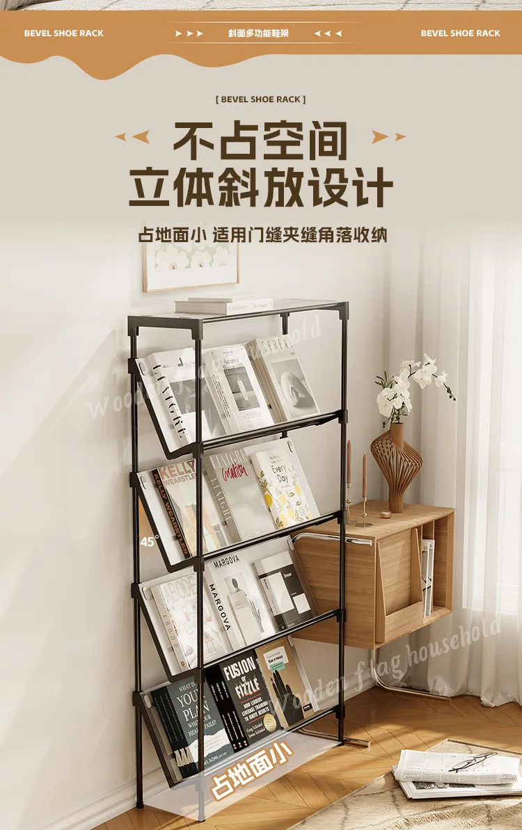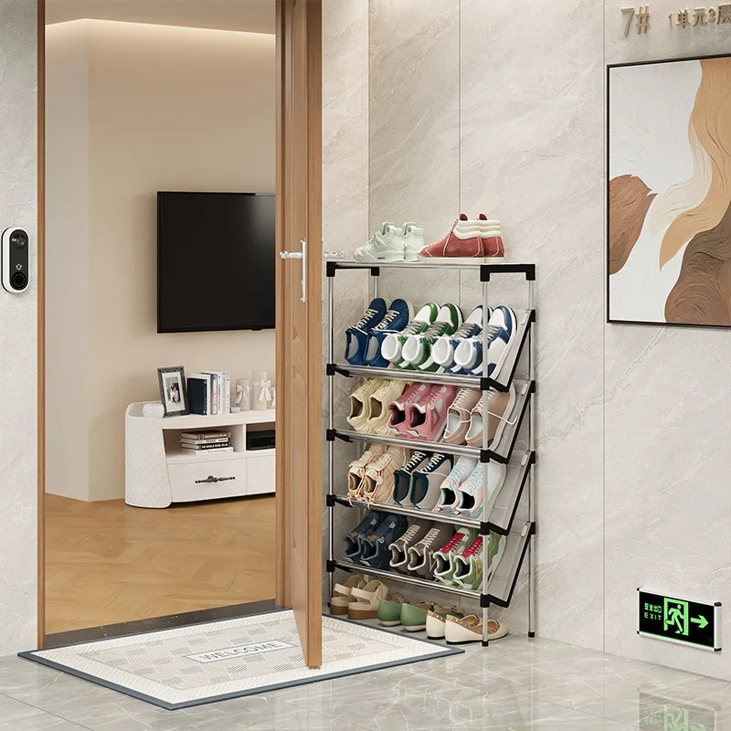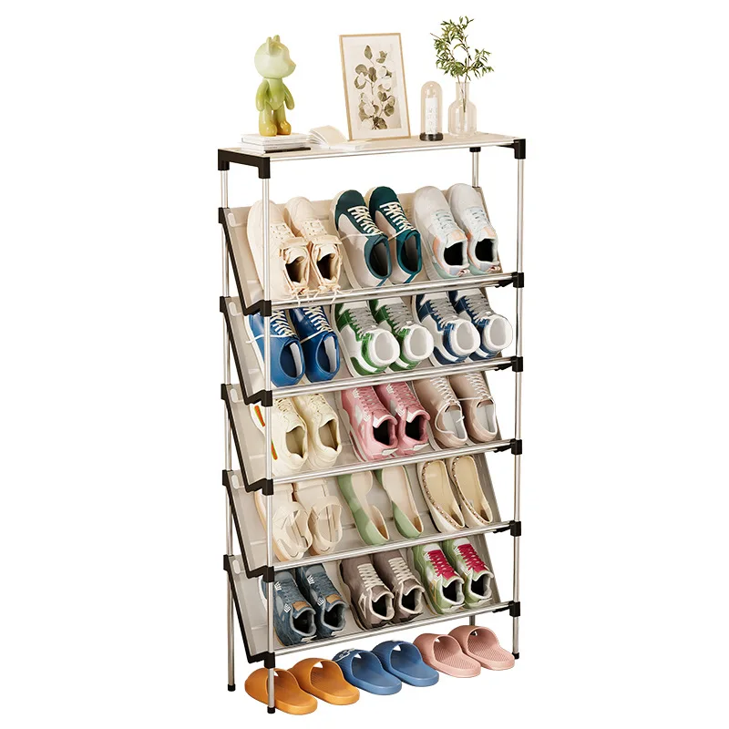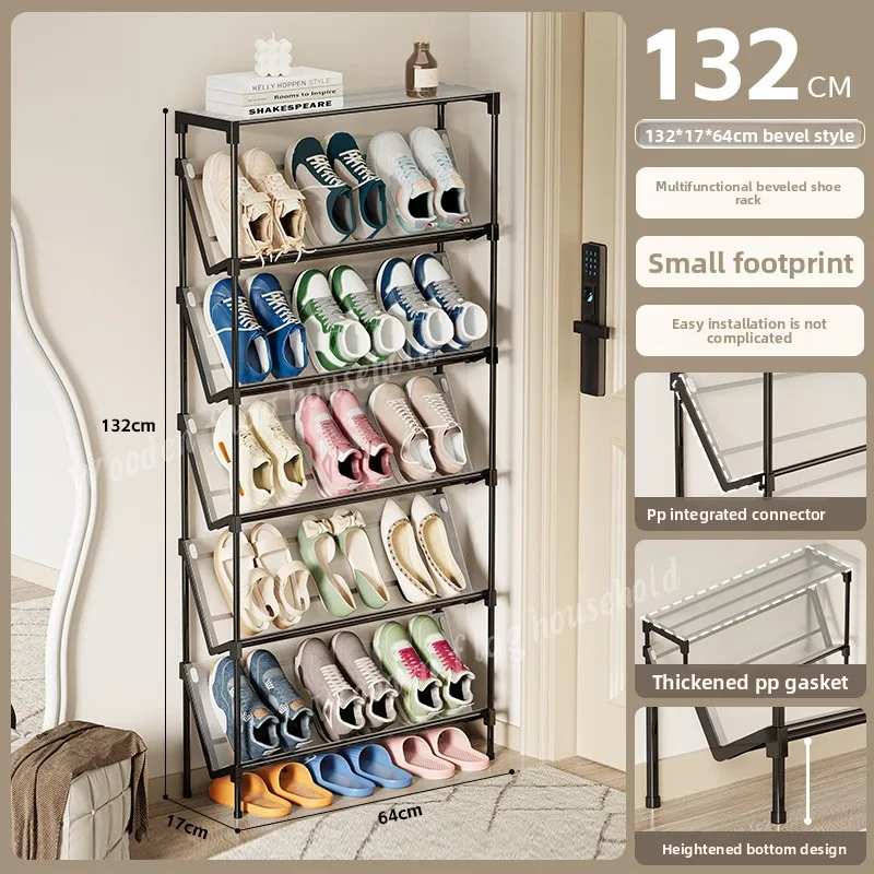 New simple multi-layer inclined dustproof shoe rack. Space saving home door step shoe cabinet, easy to assemble