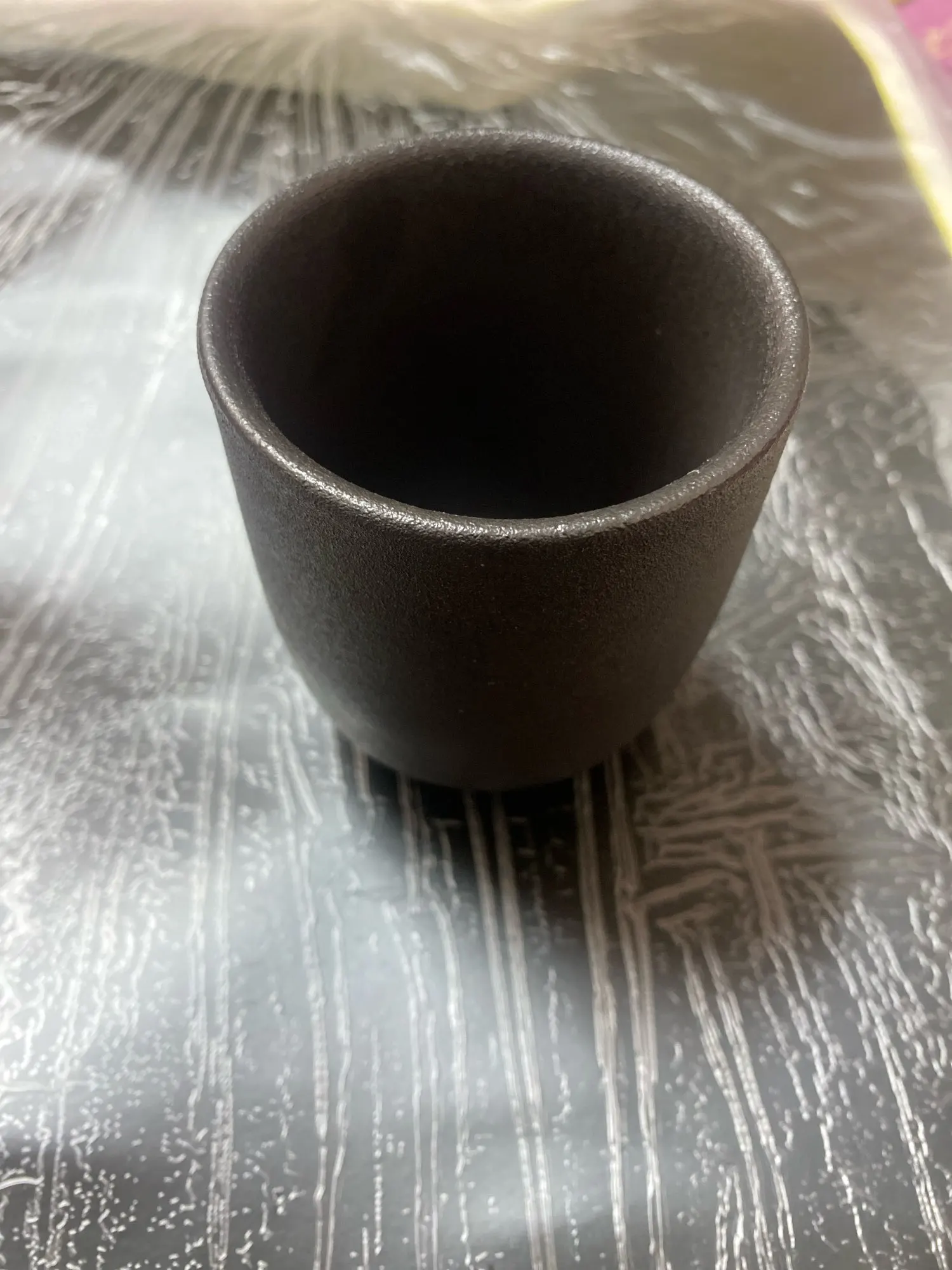 It’s porcelain, just like in the photo. However, it’s tiny enough for a coffee cup.