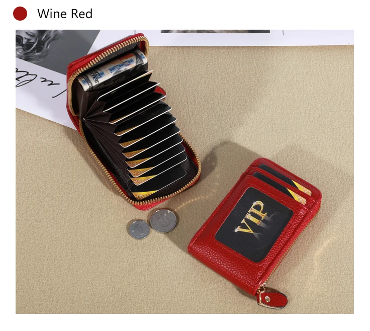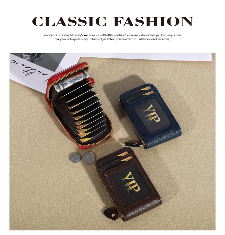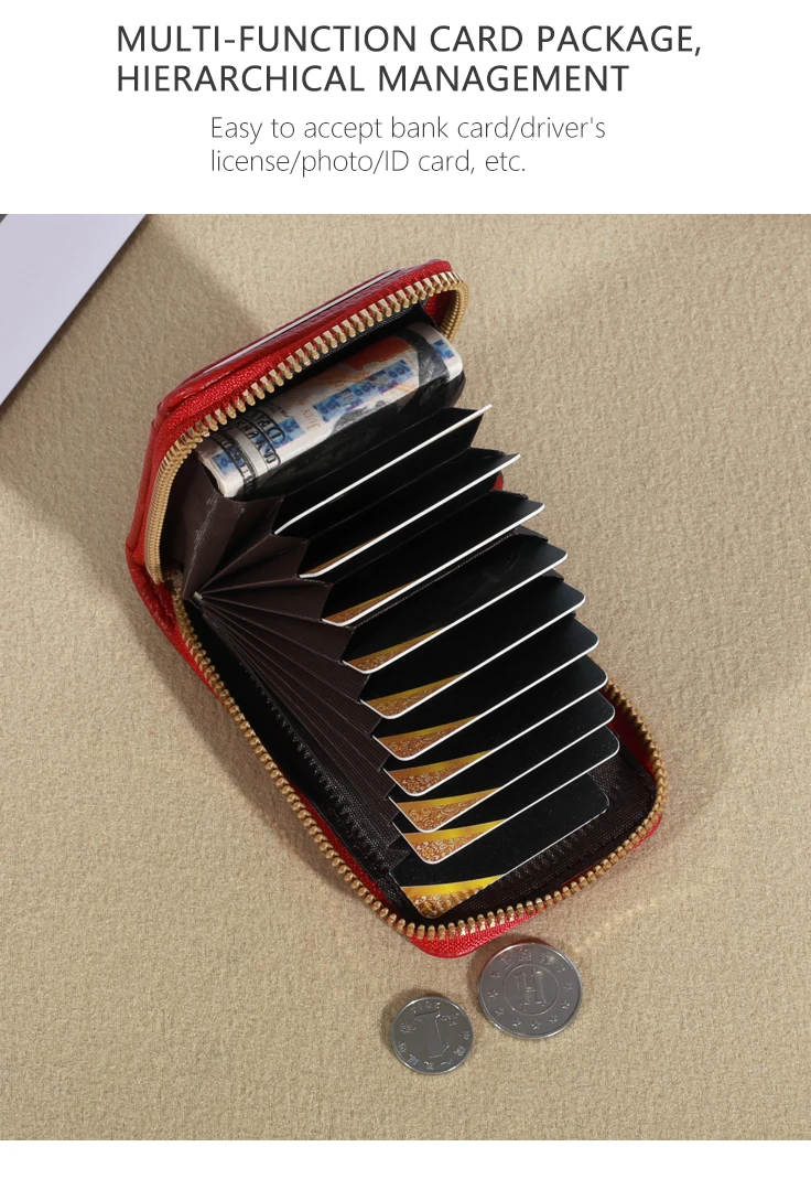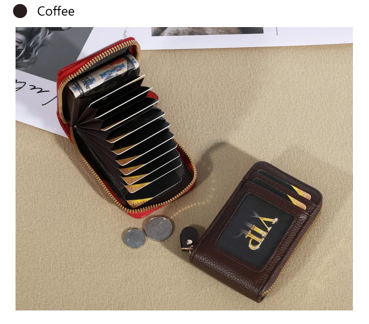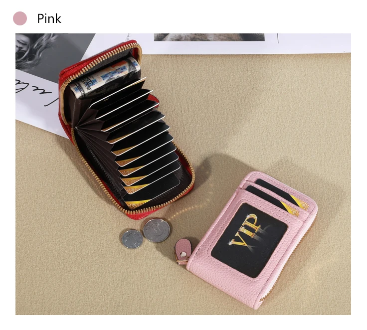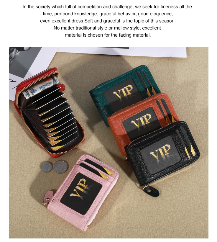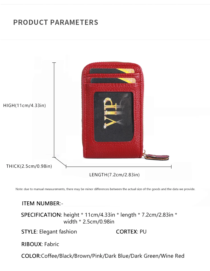 It is a very good quality and very cheap leather imitating purse. It has a zipper and inside you can put 12 credit cards when they are closed with a zipper they do not spoil or rub. In the front part you have to put two documents one of them is transparent to be able to carry the transport tickets. It is a beautiful product very well finished looks like leather and I recommend it. I also recommend the seller because the product has arrived very quickly in Spain and even so they have given me a bonus of one euro for another purchase. Is an extraordinary article
