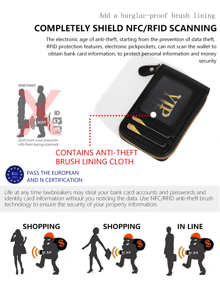 • RFID Blocking Technology :Protects your credit cards from unauthorized scanning and theft.