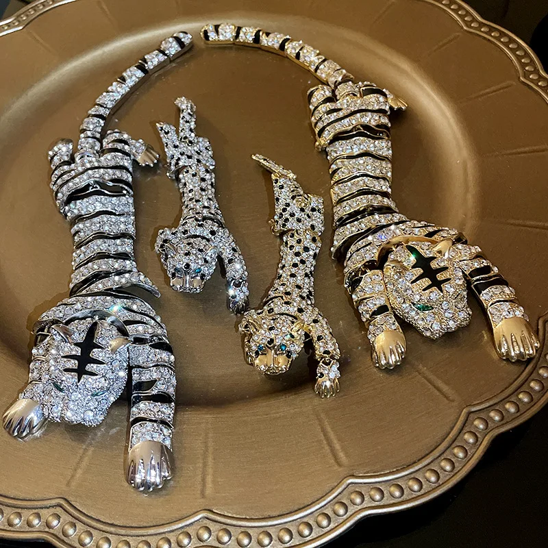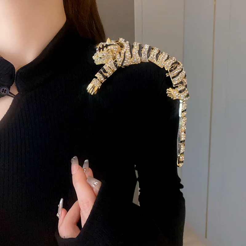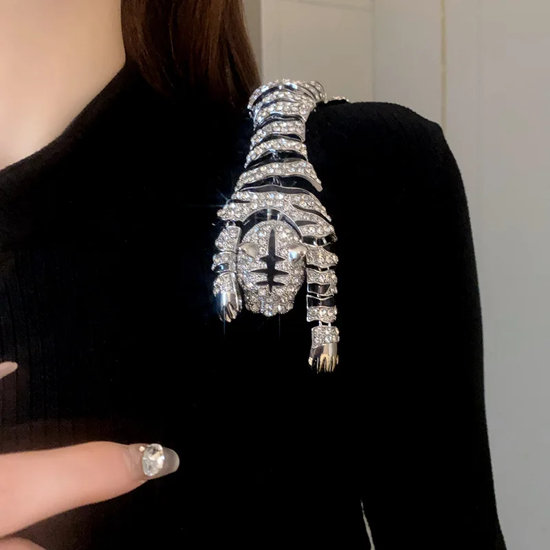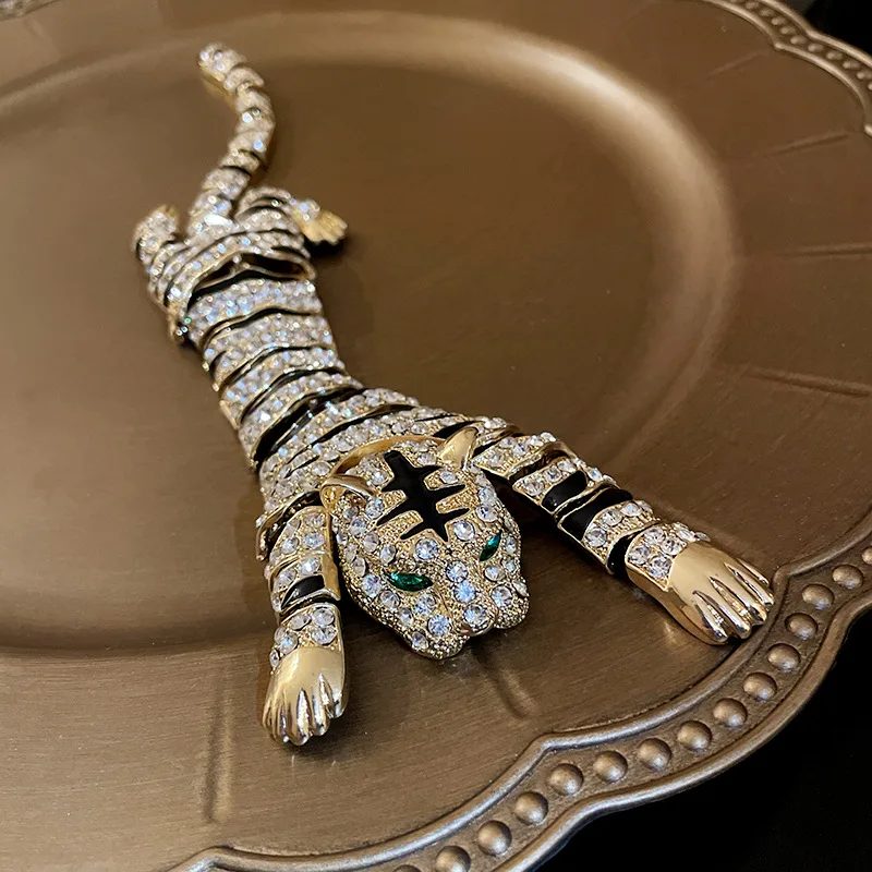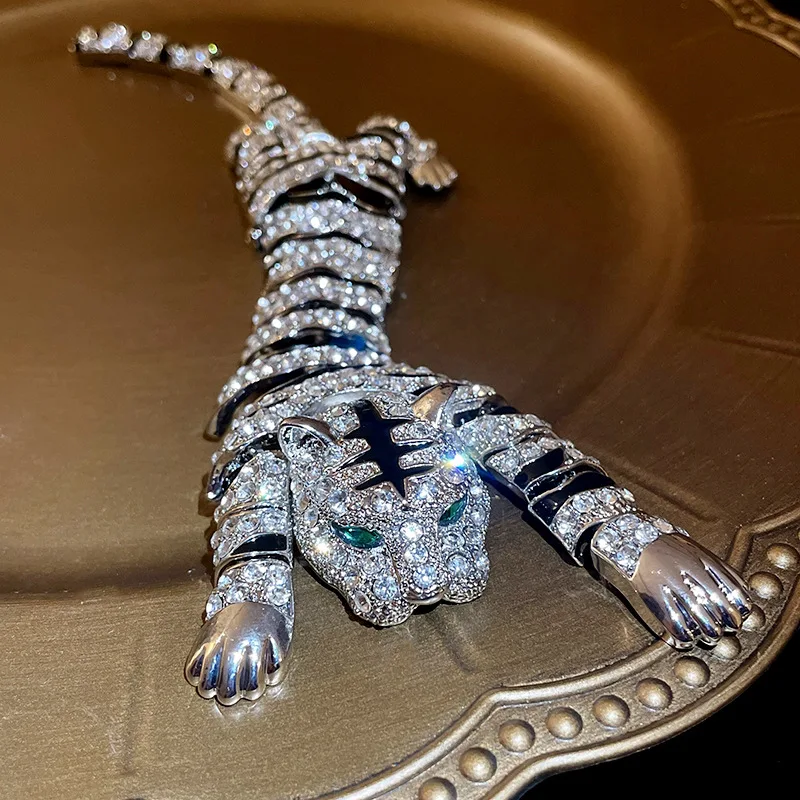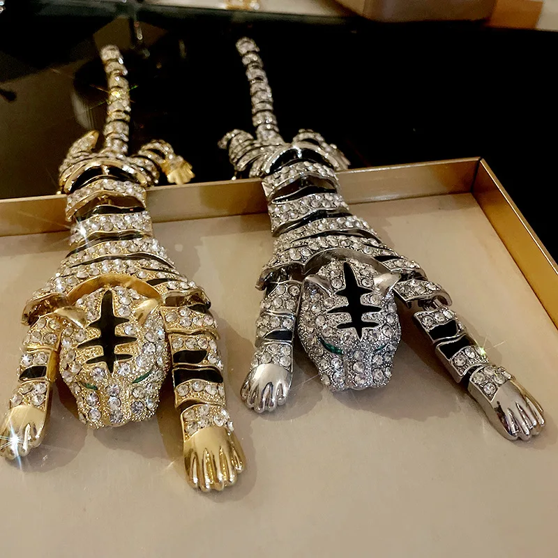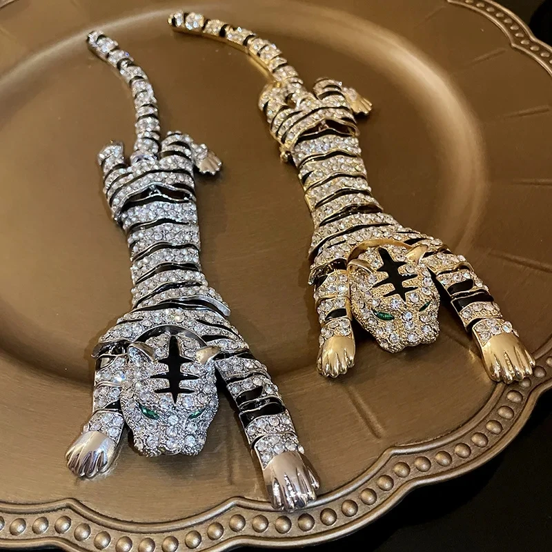 New Vintage Hyperbole Rhinestones Large Tiger leopard Shoulder Decor Brooches Men Women Unique Design Party Jewelry Accessory