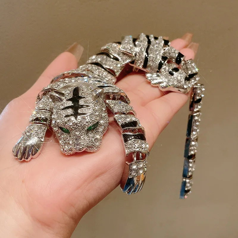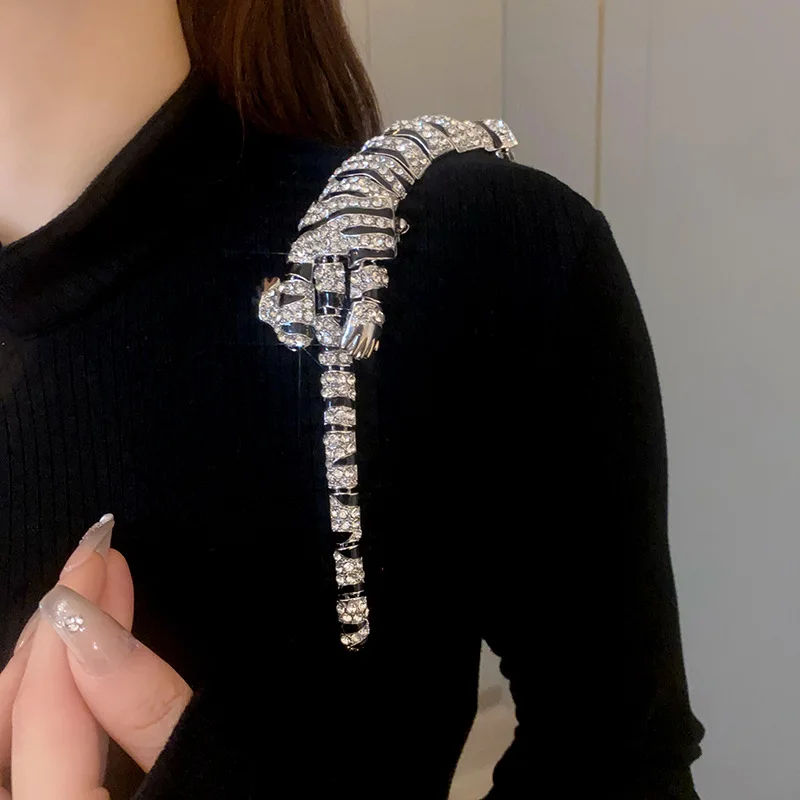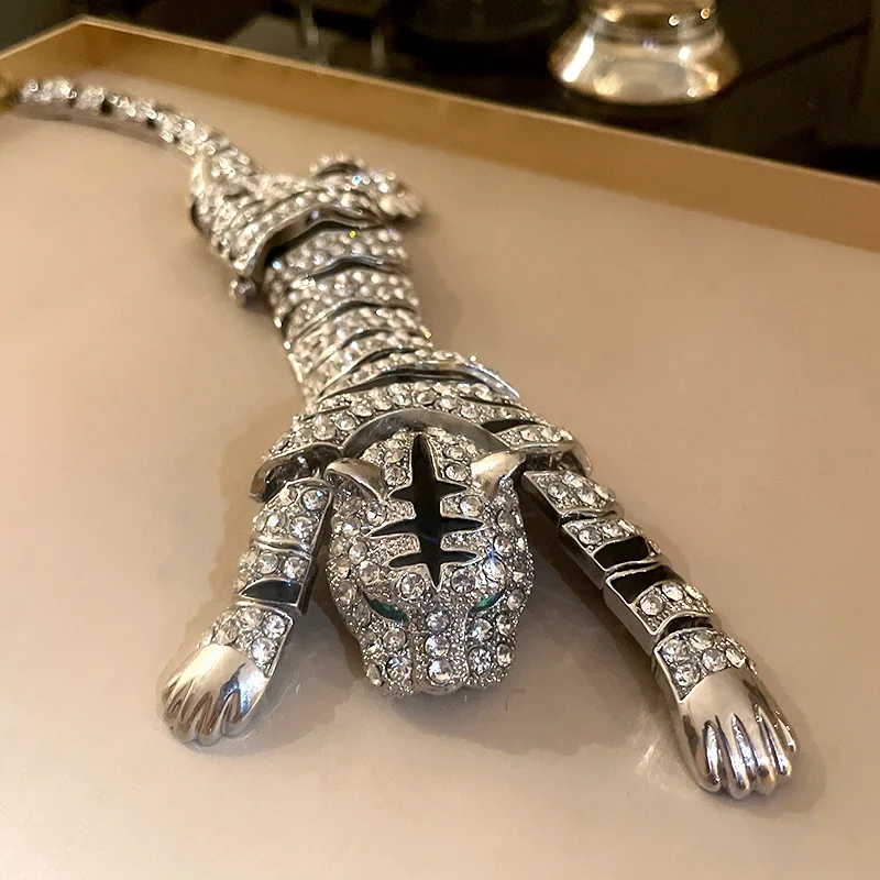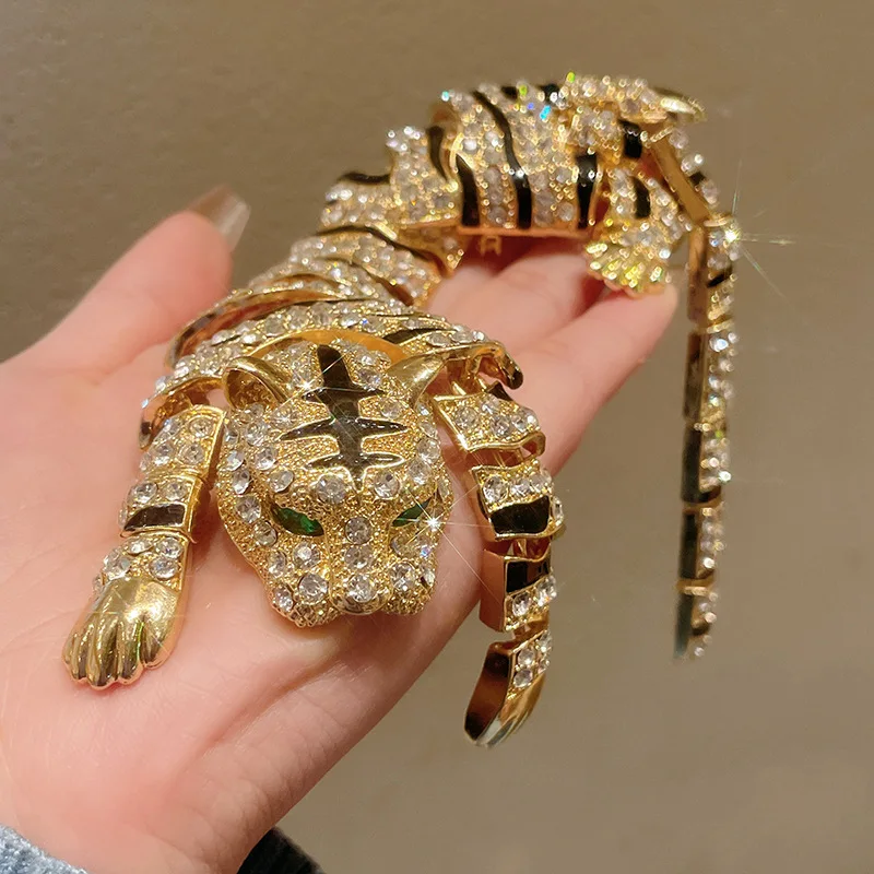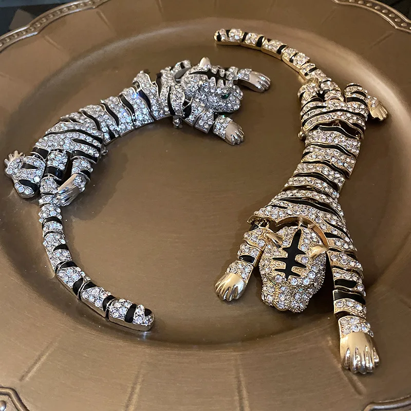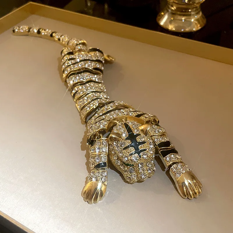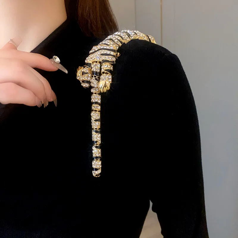 New Vintage Hyperbole Rhinestones Large Tiger leopard Shoulder Decor Brooches Men Women Unique Design Party Jewelry Accessory