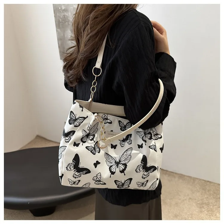 This bag is made of high-quality and high-density fabric.The clear butterfly pattern design on the surface of the bag is fashionable and versatile.The bag adopts a large-capacity design to meet the needs of various daily occasions.