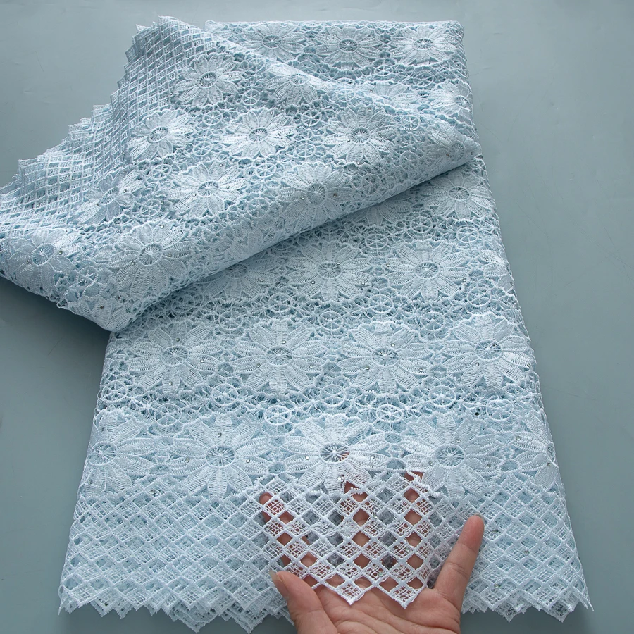 Nigerian Guipure Cord Lace Fabric 2025 High Quality 5 Yards Knitted African Water Solube Lace Fabric For Women For Wedding Dress