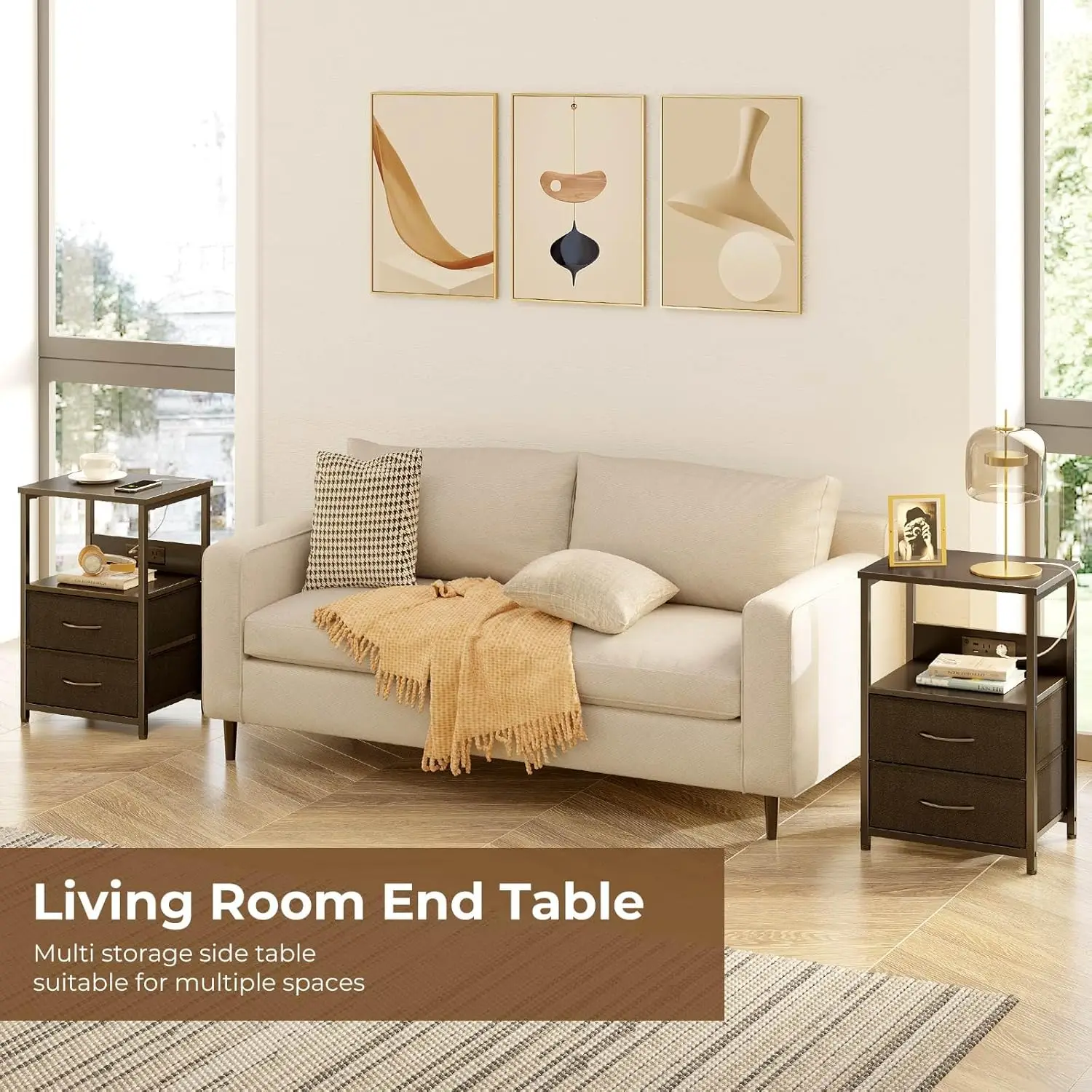 - Long Time to Use: The sturdy metal frame, durable fabric drawers, and particle board provide strong support for this side table; Vintage wood grain paired with metal frame, timeless; It promises longevity and reliability for everyday use