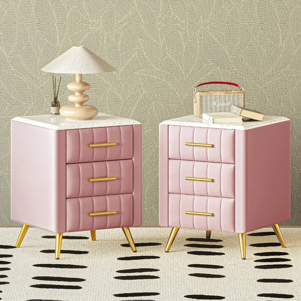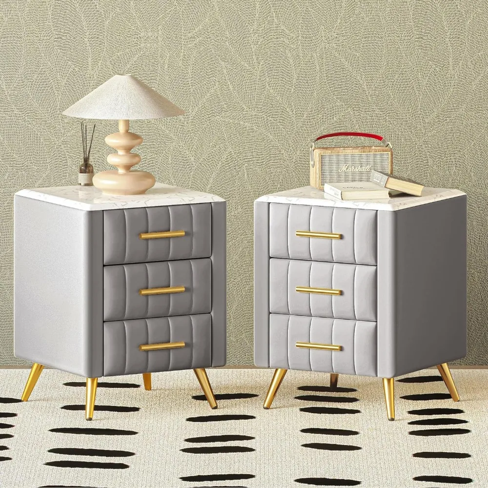 • 【Exquisite & Practical】With velvet finish, marbling top panel and metal handles & feet, the upholstered nightstand looks more elegant. Built-in 3 drawers, it can also provide enough space to store items.