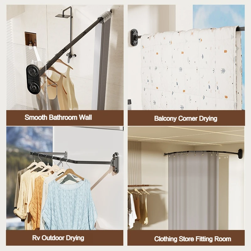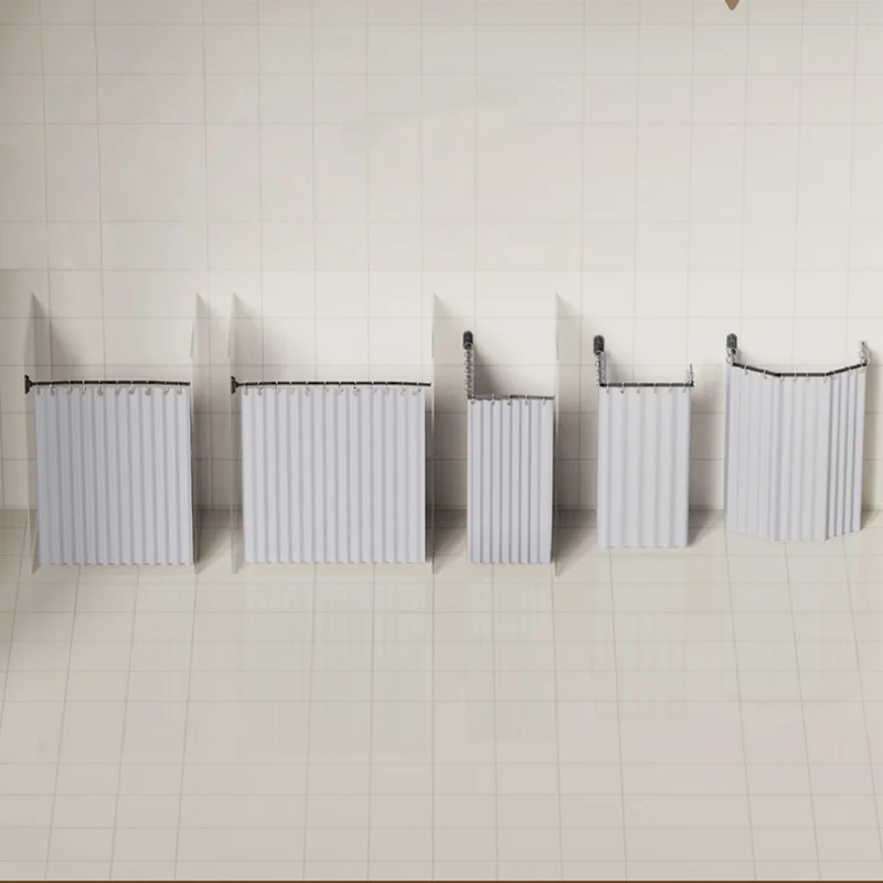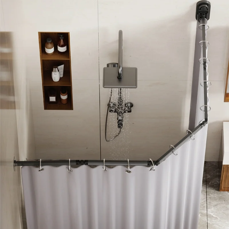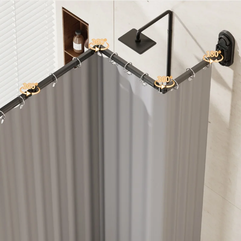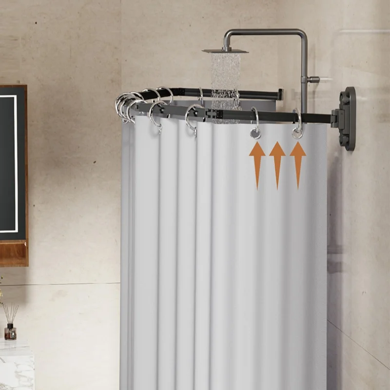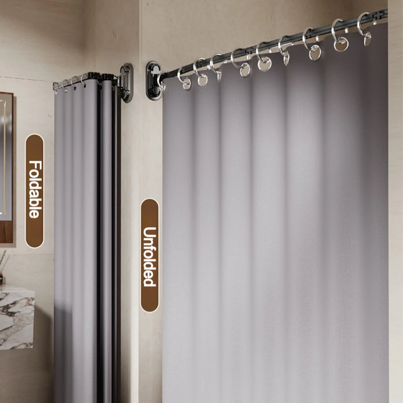No Drill Sucker Folding Rod Shower Curtain Set Invisible Shower Partition Bathroom Dry-wet Separation Waterproof Retractable