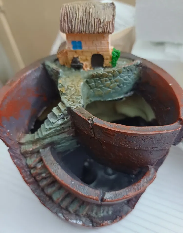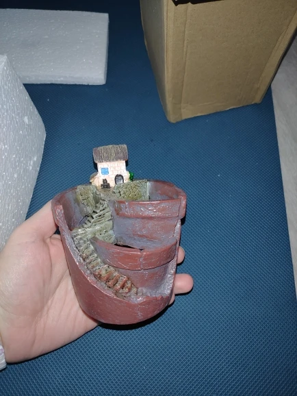So cute! It’s small just like I wanted. Perfect for living rooms and bedrooms. It’s made of resin but not heavy and already comes with a hole at the bottom. Super fast delivery!