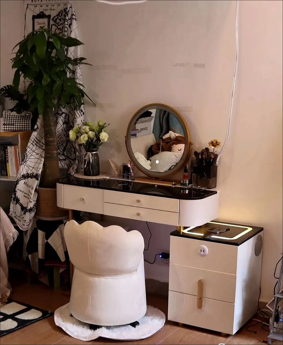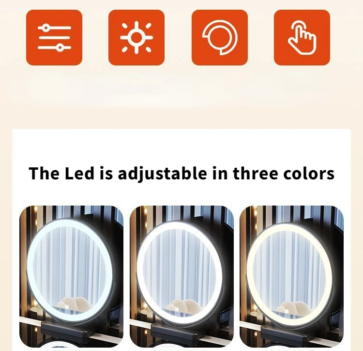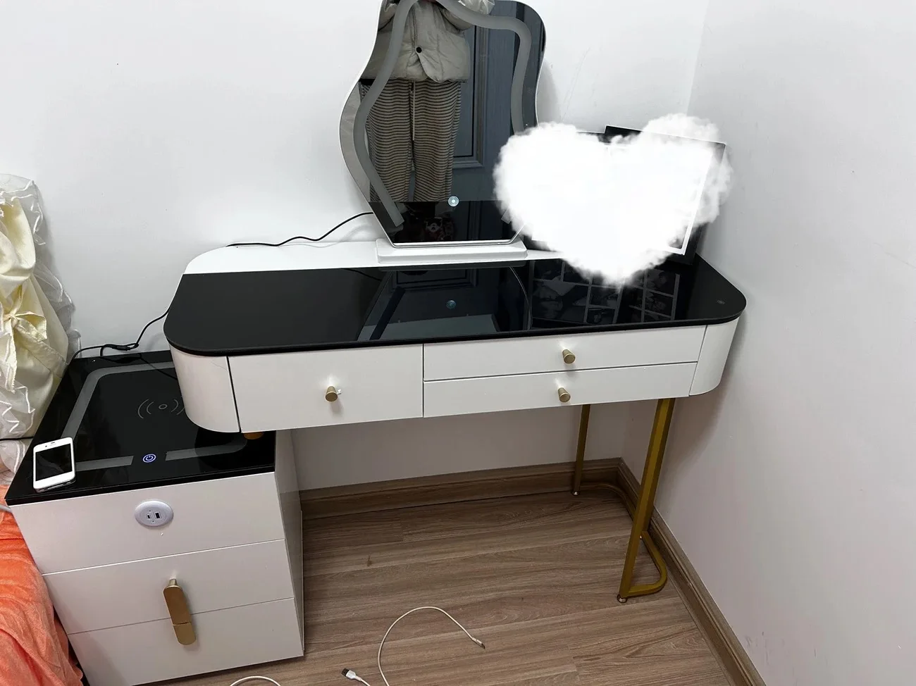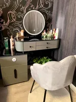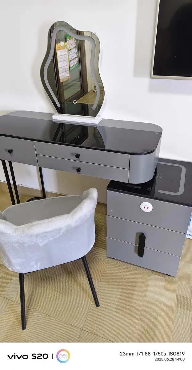 10 reviews for Nordic Glass Luxury Dressing Table with Smart Wireless Charging Bedroom Vanity Nightstand Makeup Table with Cloud Mirror Dresser