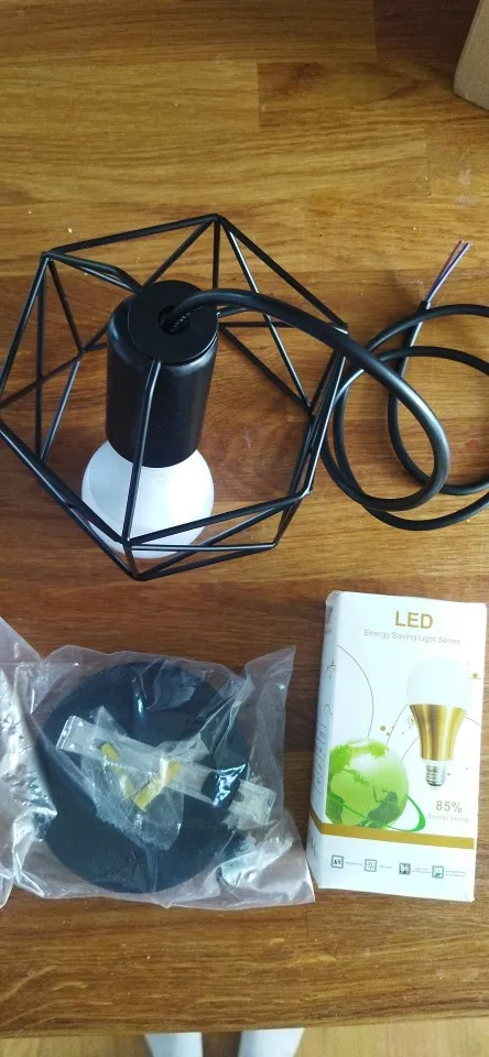 Lamp is quite small but very pretty! It is so good quality. Bulb is 7w, e27. You can place another bulb as well. You have everything you need to apply this lamp: cable and other stuff. I am very satisfied. It is so good. 🙂
