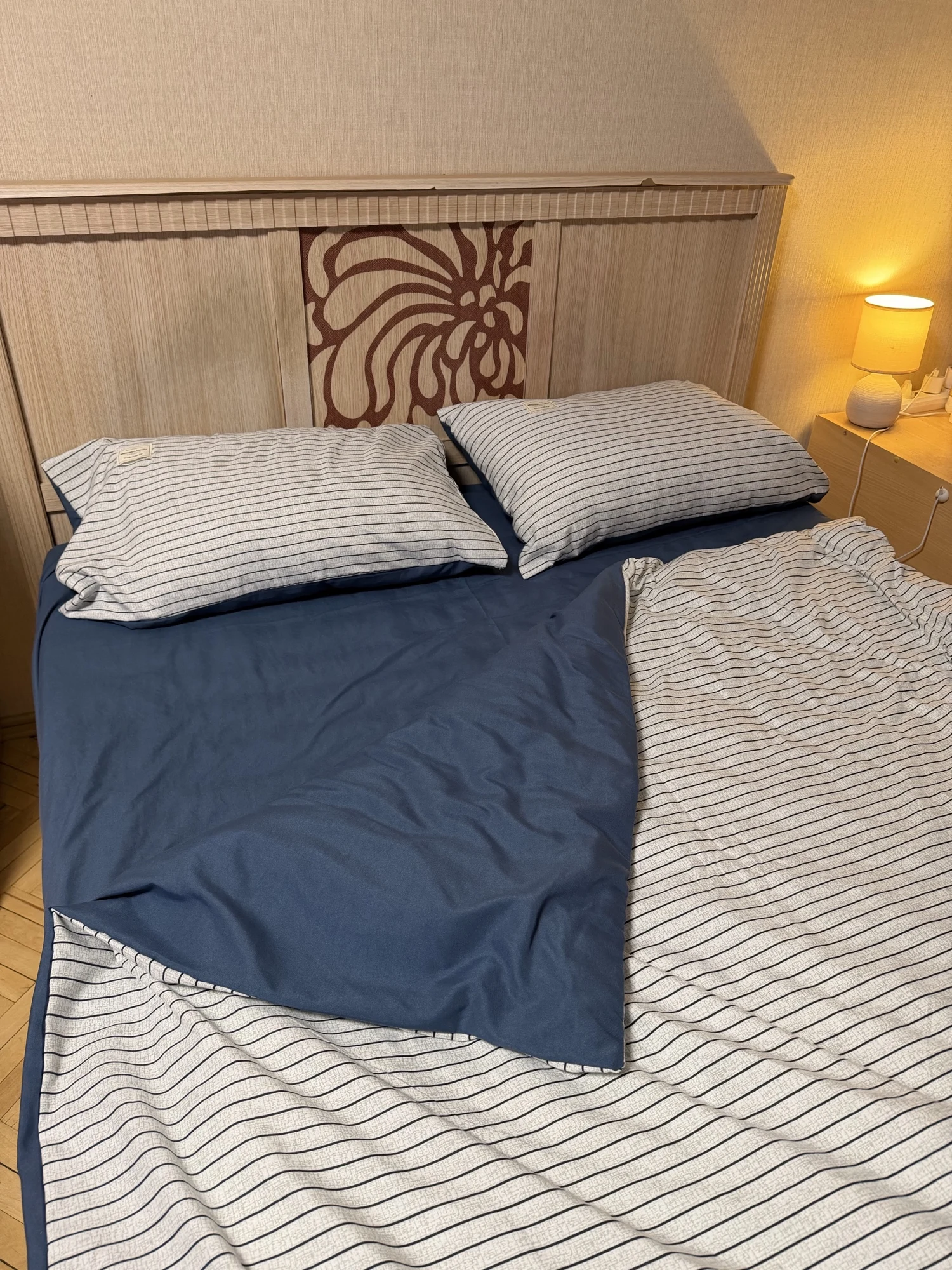 Skin-friendly bed linen. It didn’t fade after washing. The material is smooth and doesn’t wrinkle. Another plus is the zippered duvet cover!